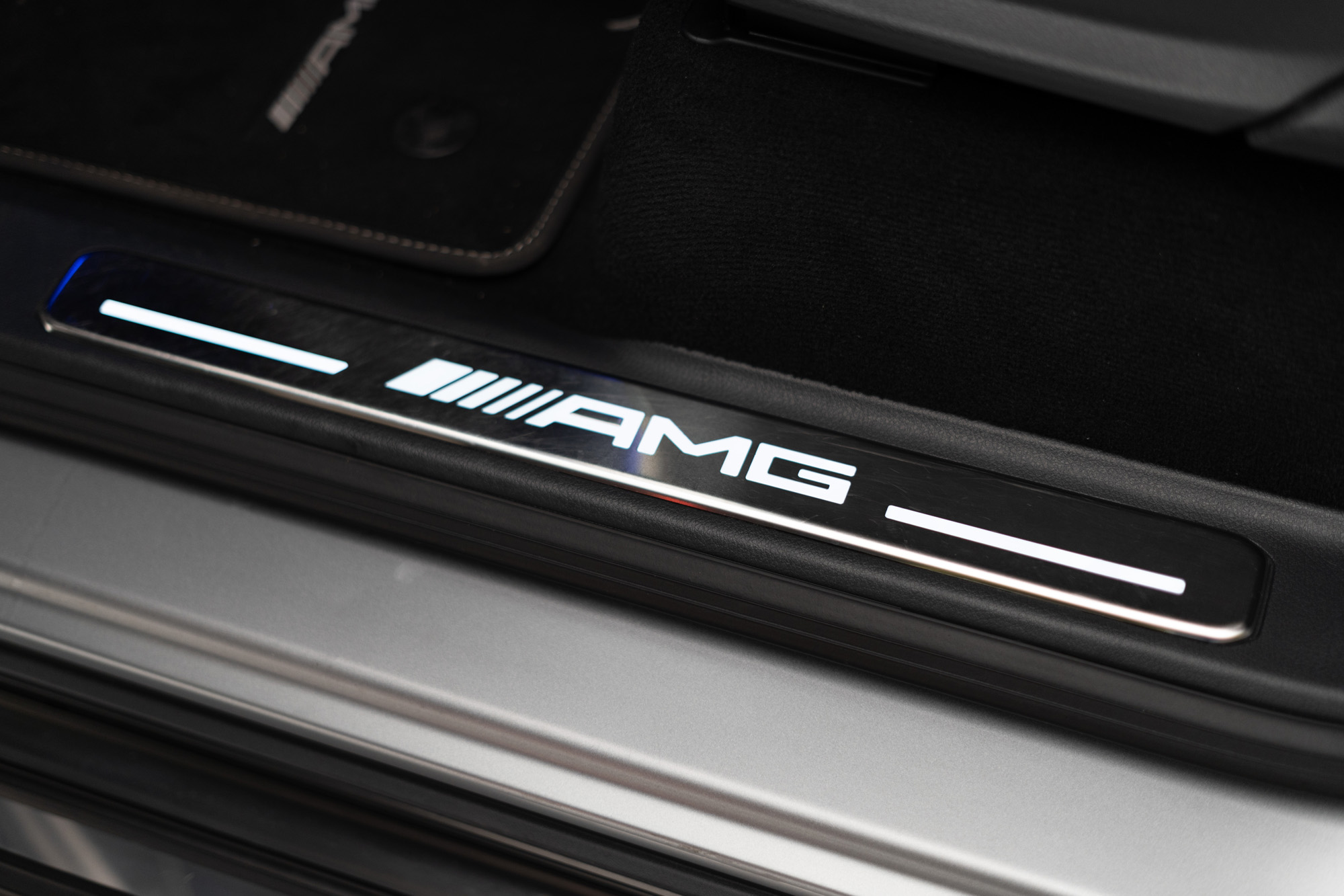 Soleira em Alumínio com inscrição "AMG" iluminada