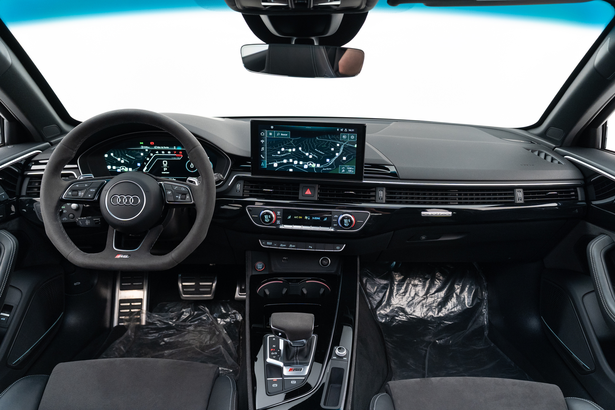 Interior em Couro Preto e Alcântara com costuras cinza