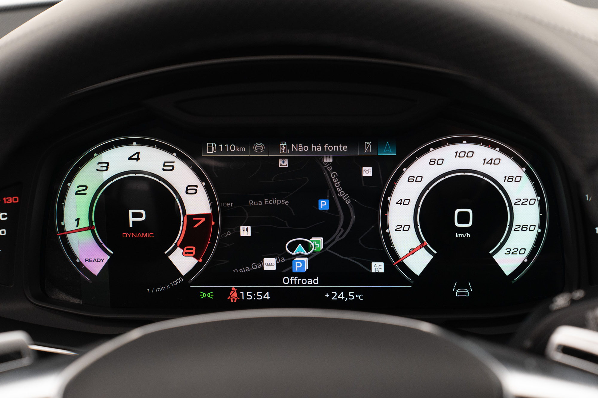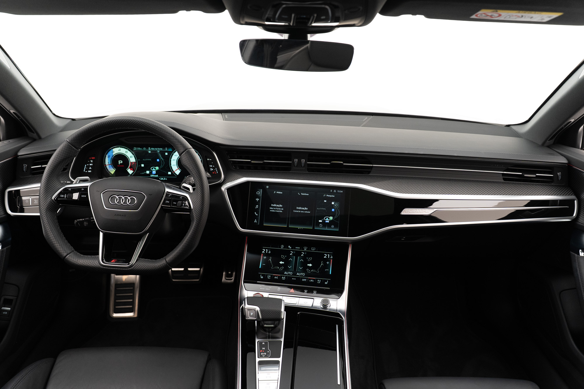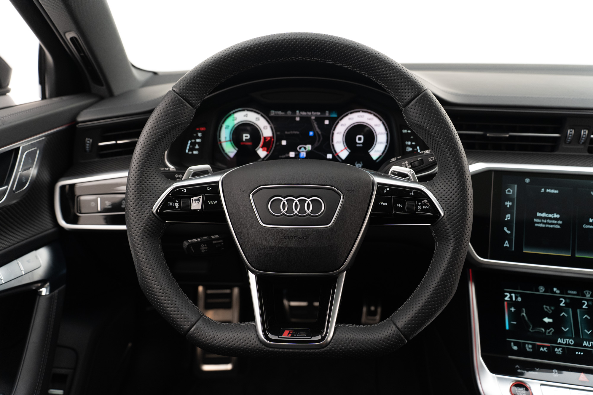 GARANTIA ATÉ 09/2027 Motor 4.0 V8 biturbo MHEV de 630CV e 86,7KGFM de torque Câmbio automático de 8 velocidades 0-100km/h em 3,4s Velocidade Máxima 280KM/h Tração Quattro Rodas de 22" em Black Piano Pinças de freio em Vermelho Cor Preto Mito Acabamentos externos em Black Piano Faróis LED Matrix Porta malas elétrico Portas com soft close Projeção de porta "RS Performance" Soleira em Alumínio com inscrição "RS6" iluminada Interior em Couro Valcona Preto Acabamentos internos em Fibra de Carbono Iluminação ambiente configurável Painel de instrumentos digital configurável Head-Up display Multimídia com Navegação, Apple CarPlay e Android Auto Sistema de som Bang & Olufsen Carregador wireless Cortinas para fileira traseira Teto solar duplo elétrico Bancos dianteiros com ajustes elétricos, climatização e memória Volante multifuncional com paddle shift e ajuste elétrico Ar-condicionado de quatro zonas Sensores de estacionamento dianteiros e traseiros Câmeras 360° com modo 3D Assistente de estacionamento Controle de cruzeiro adaptativo Modos de condução: Efficiency, Comfort, Dynamic e Auto Modos de suspensão: Confortável, Equilibrada e Esporte Eixo traseiro direcional Sistema de escapamento ativo Assistente de tráfego traseiro Assistente de manobra Assistente de direção Advertência de distância Aviso de troca de faixa Aviso de afastamento de faixa Audi pre sense