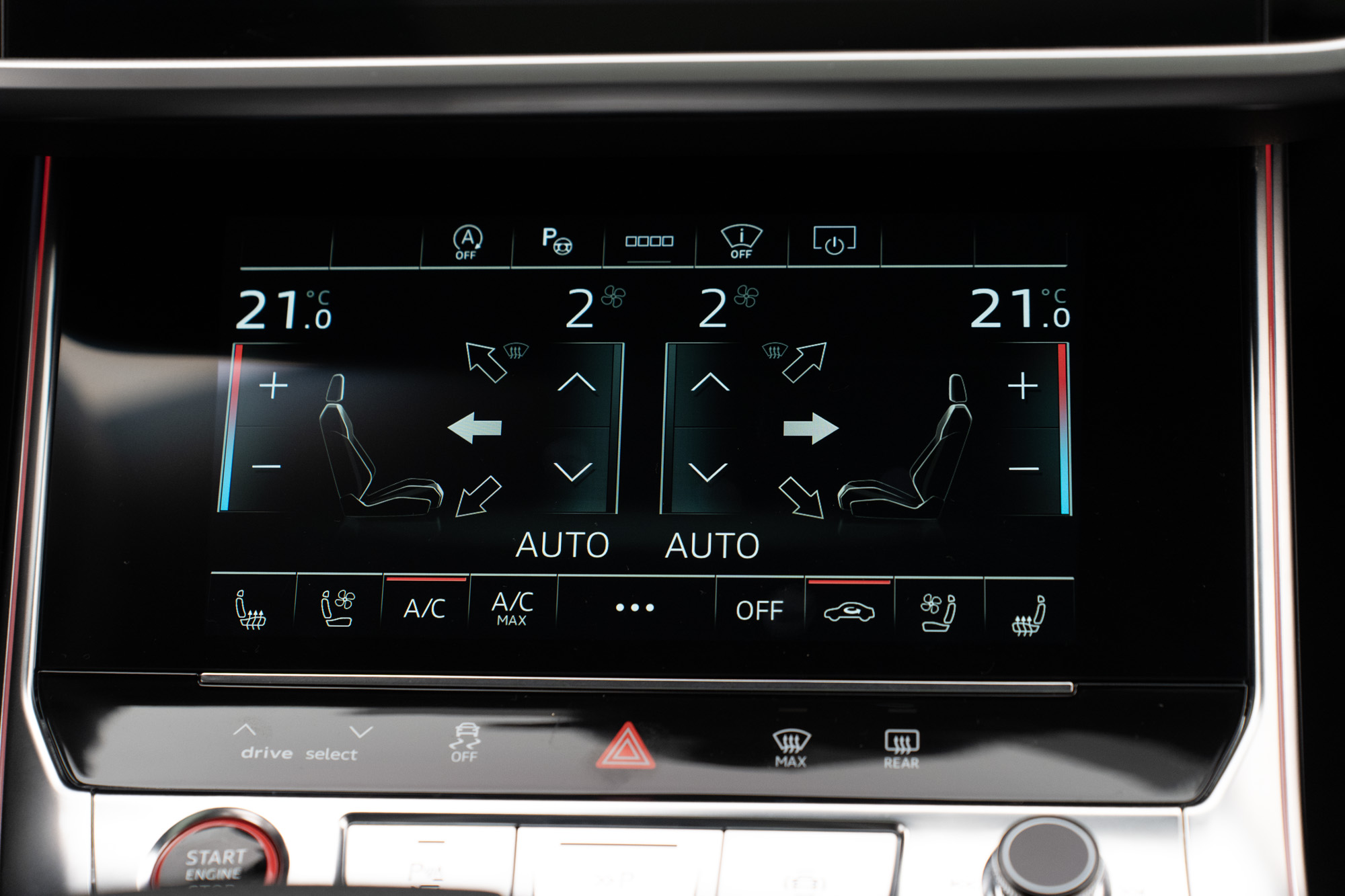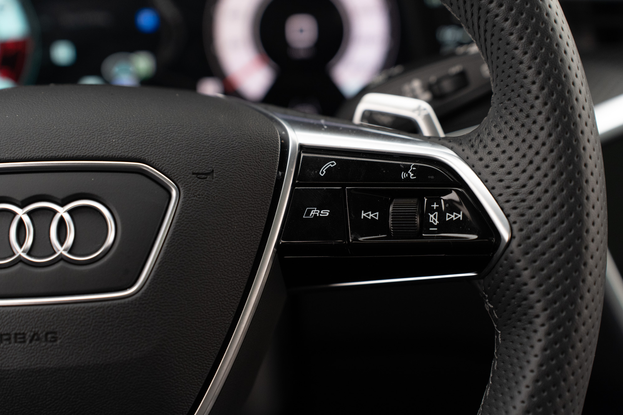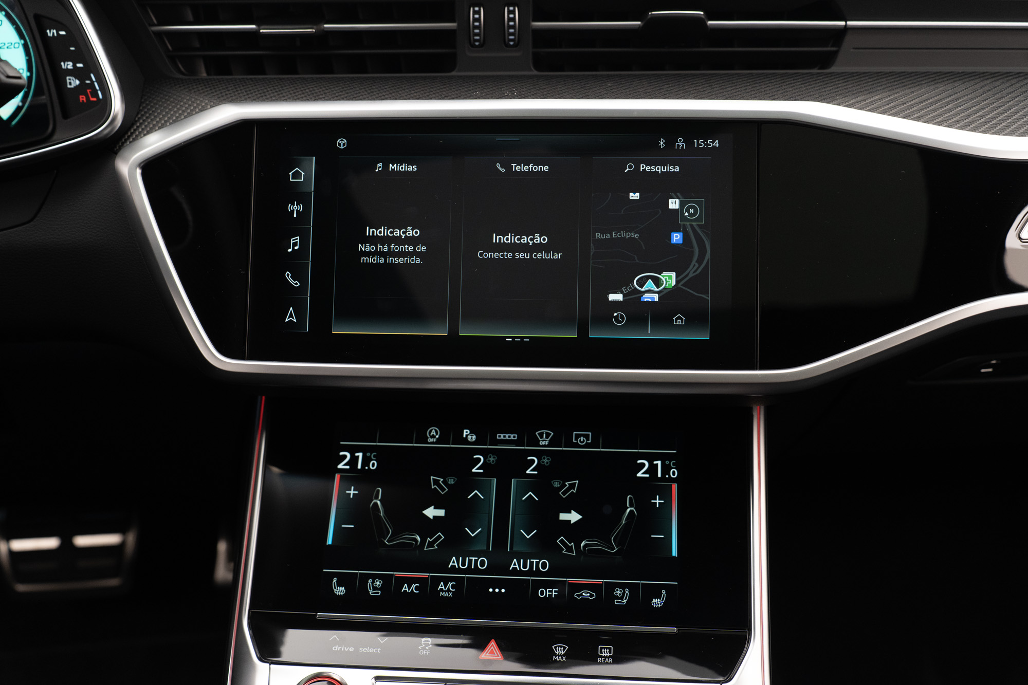 GARANTIA ATÉ 09/2027 Motor 4.0 V8 biturbo MHEV de 630CV e 86,7KGFM de torque Câmbio automático de 8 velocidades 0-100km/h em 3,4s Velocidade Máxima 280KM/h Tração Quattro Rodas de 22" em Black Piano Pinças de freio em Vermelho Cor Preto Mito Acabamentos externos em Black Piano Faróis LED Matrix Porta malas elétrico Portas com soft close Projeção de porta "RS Performance" Soleira em Alumínio com inscrição "RS6" iluminada Interior em Couro Valcona Preto Acabamentos internos em Fibra de Carbono Iluminação ambiente configurável Painel de instrumentos digital configurável Head-Up display Multimídia com Navegação, Apple CarPlay e Android Auto Sistema de som Bang & Olufsen Carregador wireless Cortinas para fileira traseira Teto solar duplo elétrico Bancos dianteiros com ajustes elétricos, climatização e memória Volante multifuncional com paddle shift e ajuste elétrico Ar-condicionado de quatro zonas Sensores de estacionamento dianteiros e traseiros Câmeras 360° com modo 3D Assistente de estacionamento Controle de cruzeiro adaptativo Modos de condução: Efficiency, Comfort, Dynamic e Auto Modos de suspensão: Confortável, Equilibrada e Esporte Eixo traseiro direcional Sistema de escapamento ativo Assistente de tráfego traseiro Assistente de manobra Assistente de direção Advertência de distância Aviso de troca de faixa Aviso de afastamento de faixa Audi pre sense
