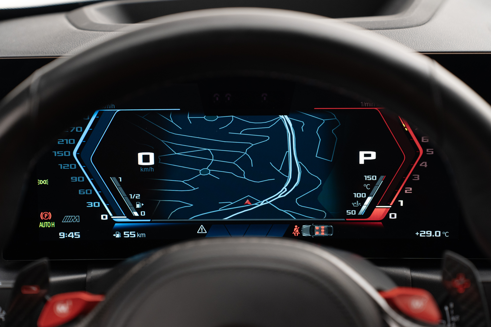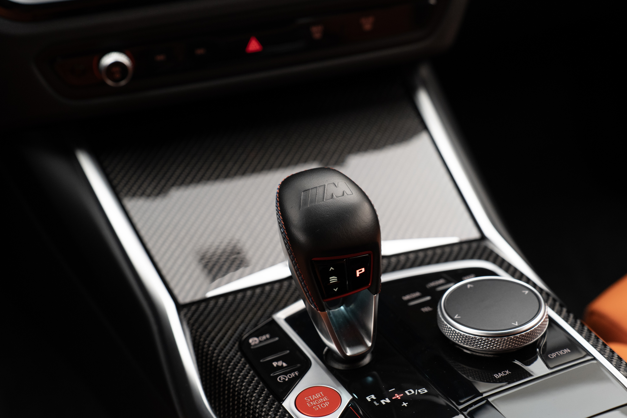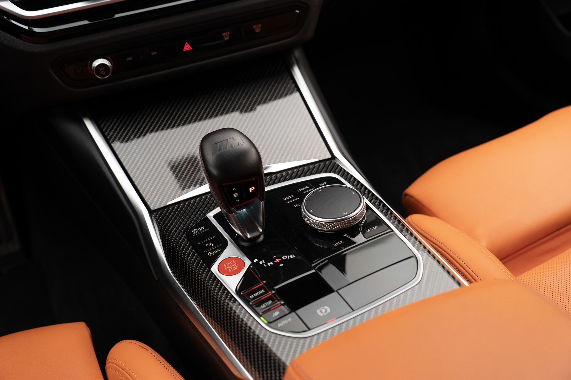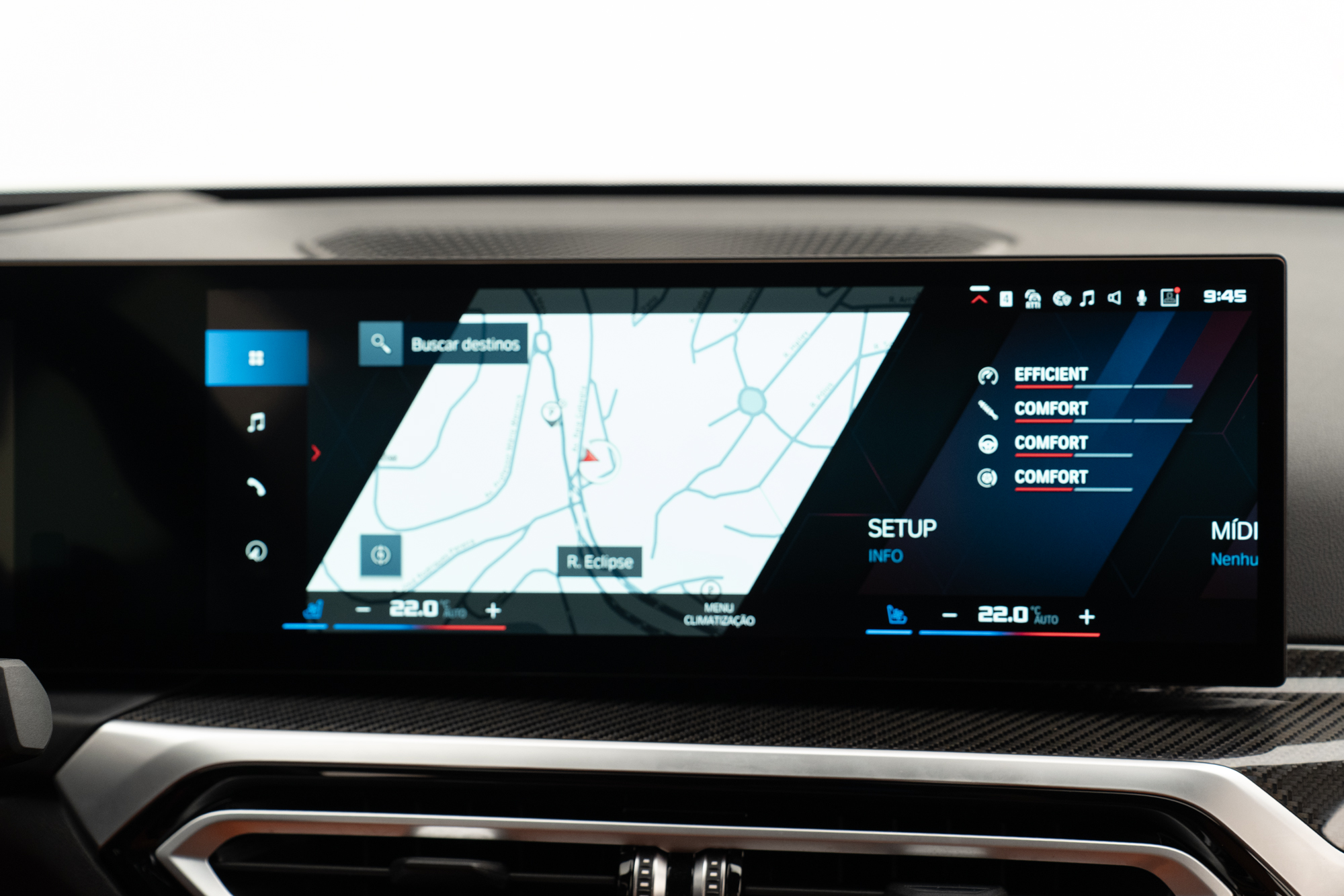 Volante multifuncional com seletor de modos M1 e M2, paddle shift e acabamentos em Fibra de Carbono