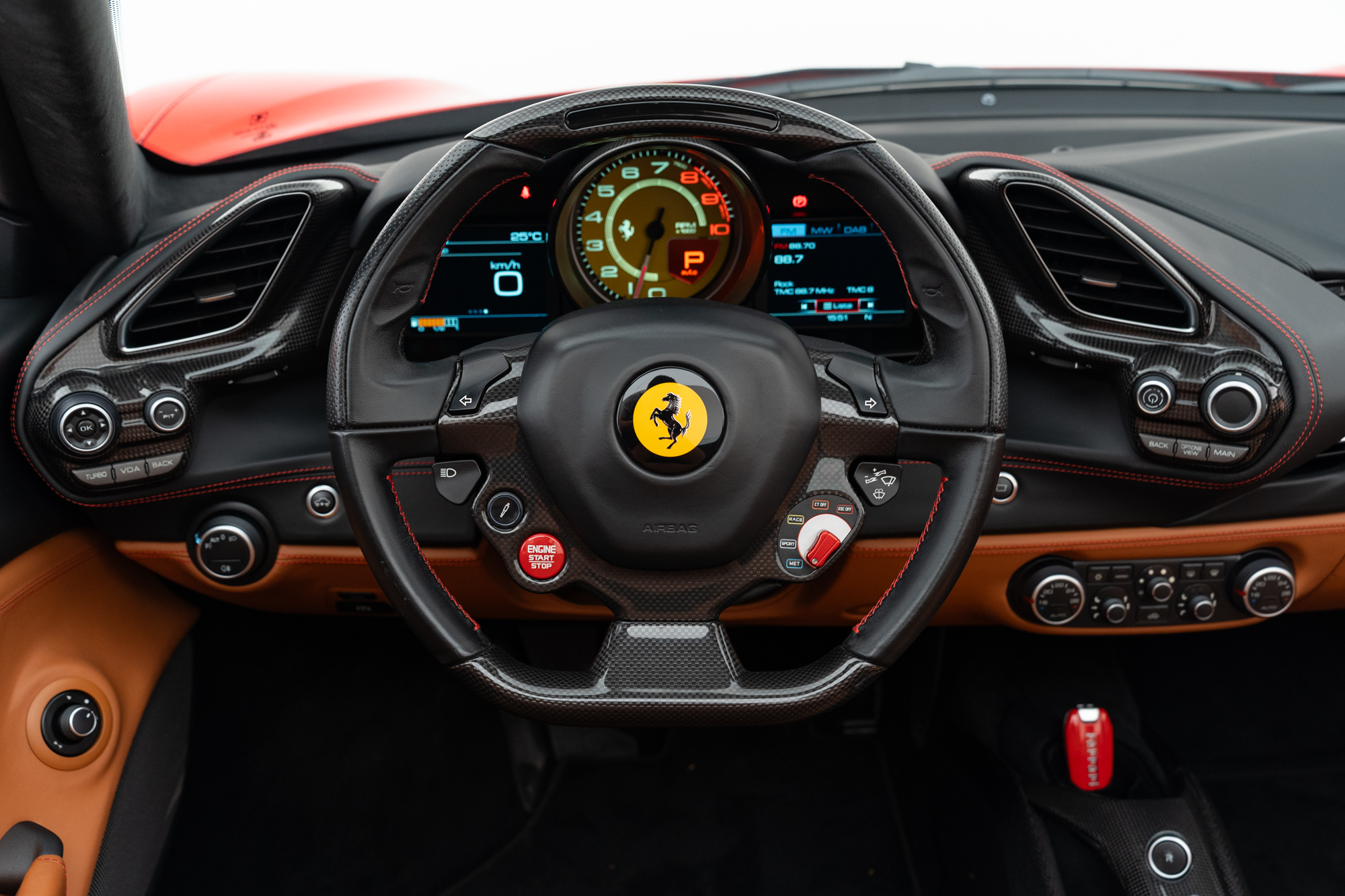 Interior em couro Cuoio e costuras Rosso