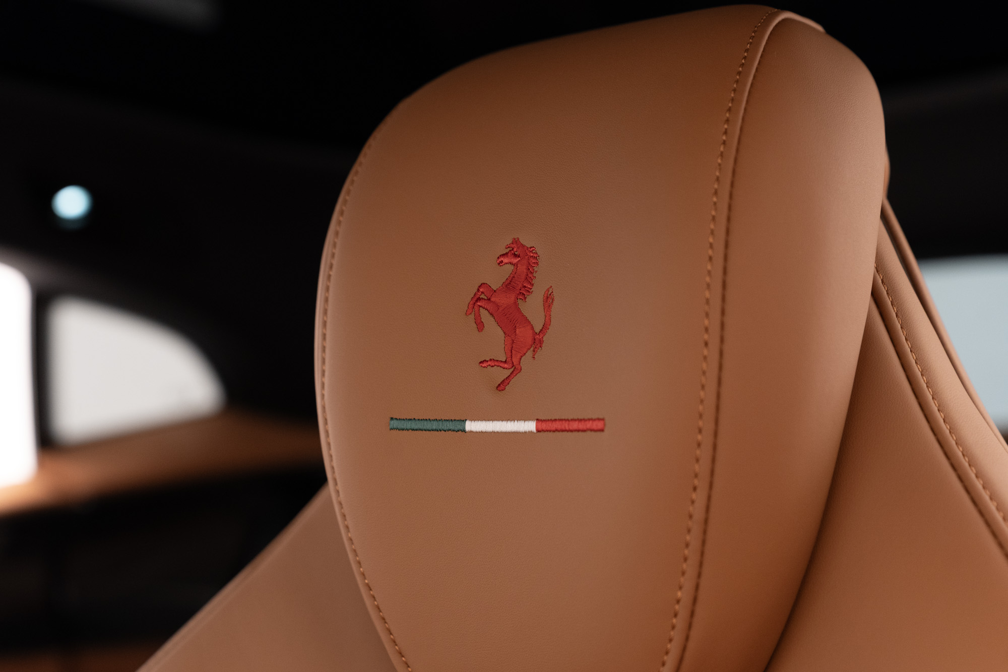 Cavalino Ferrari Rosso nos encostos de cabeça com bandeira Itália