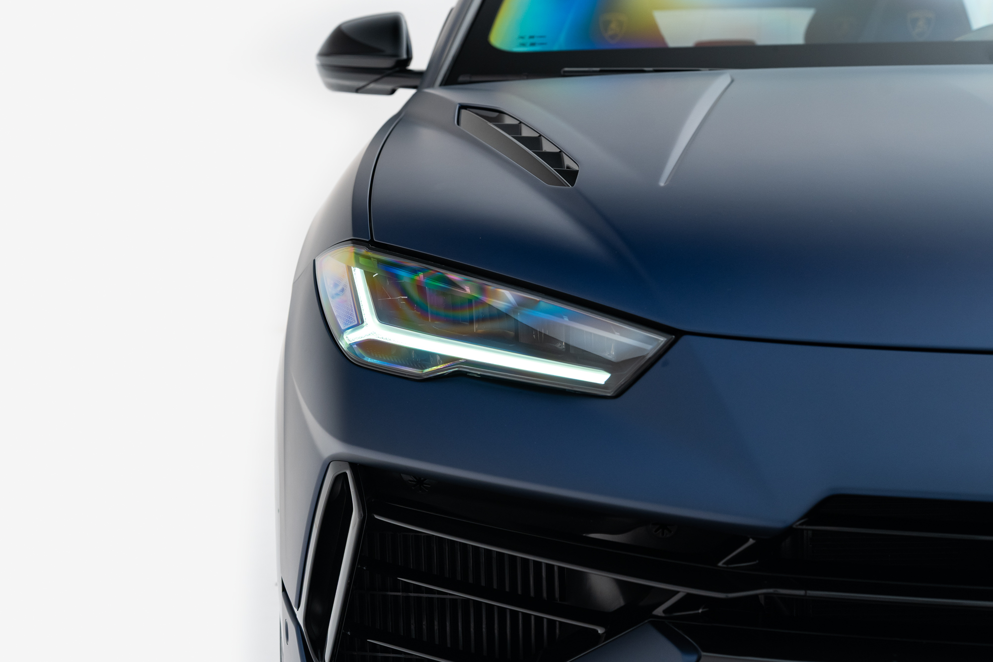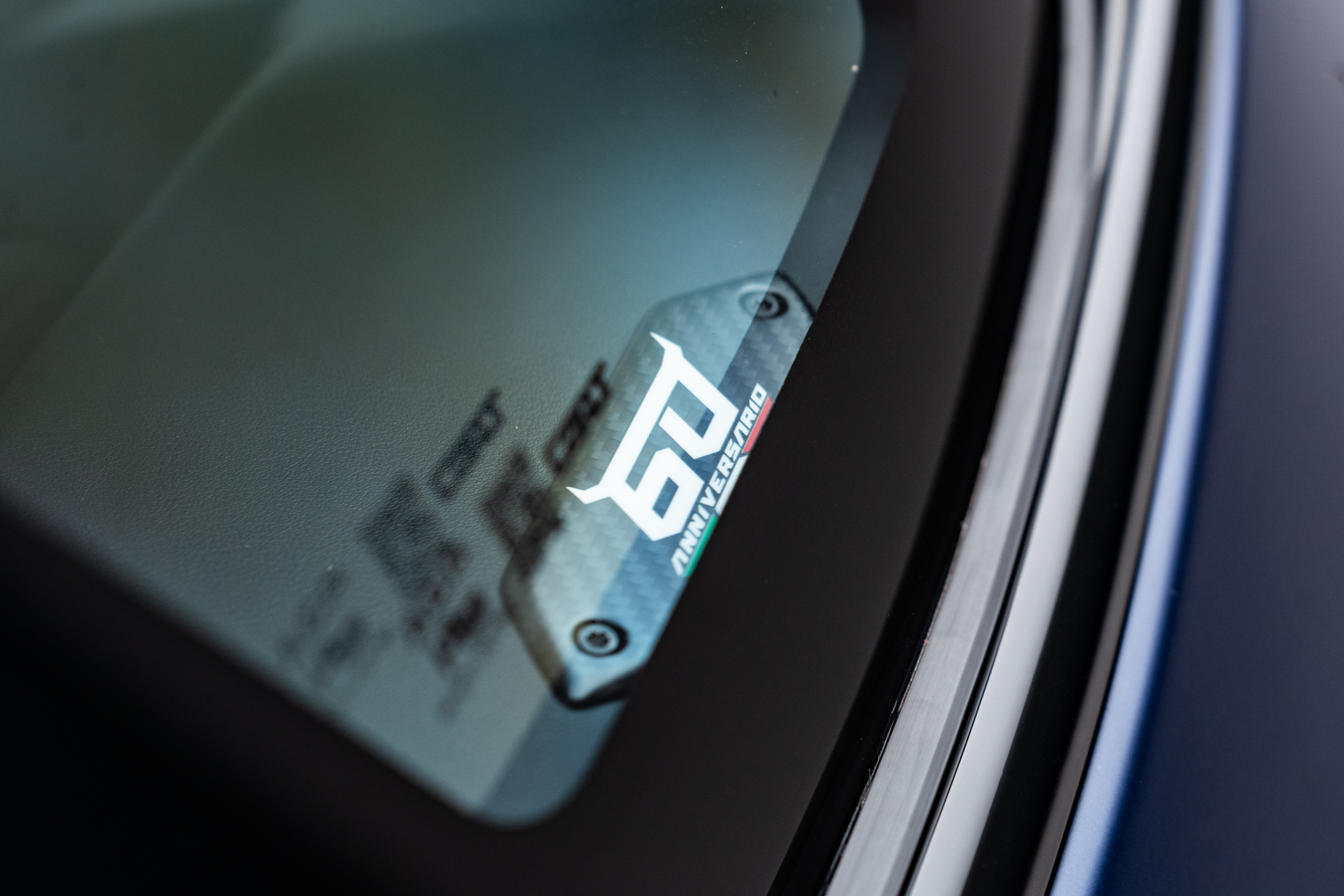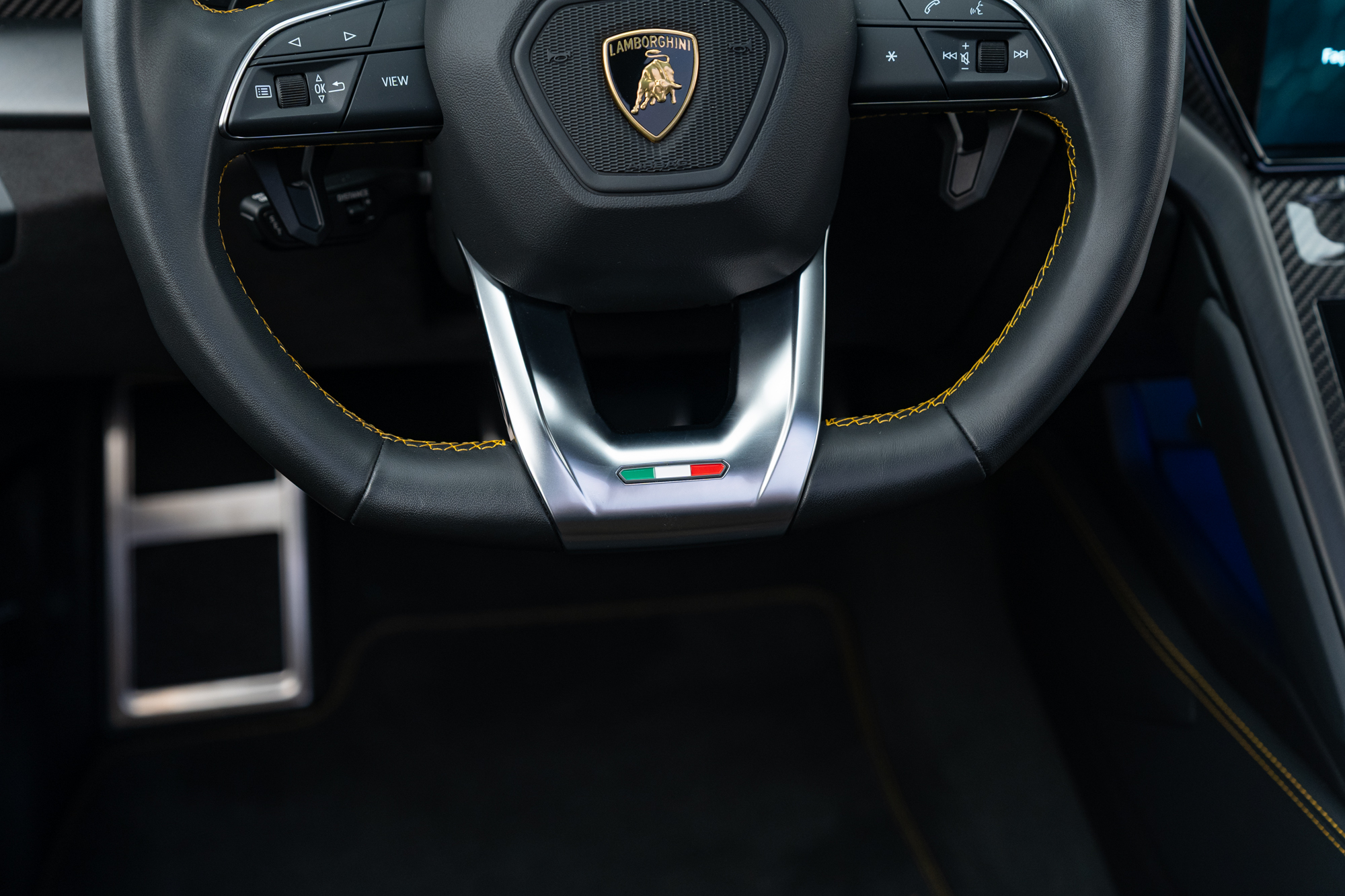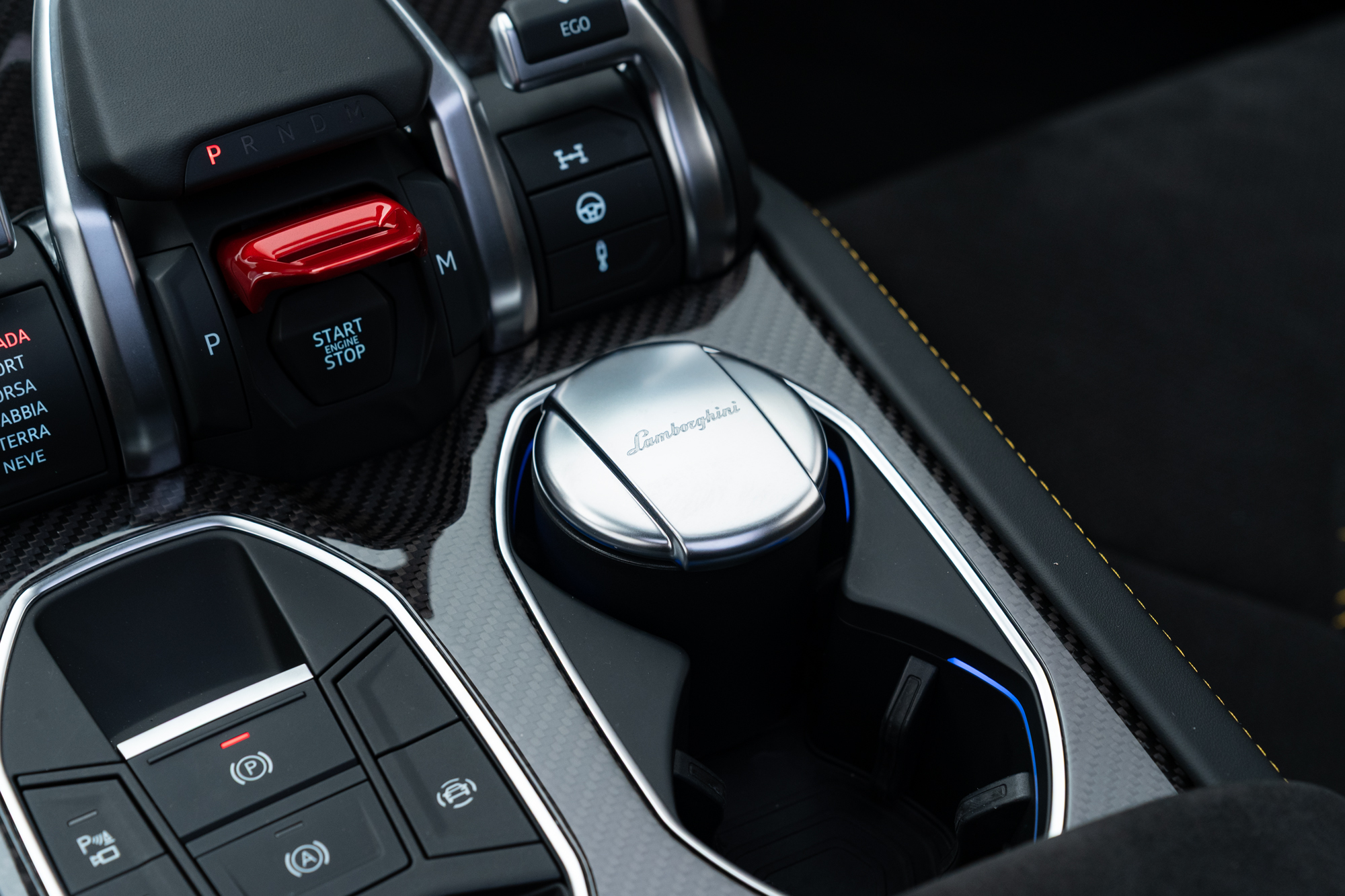 Logo Lamborghini grafado nos encostos de cabeça dos bancos