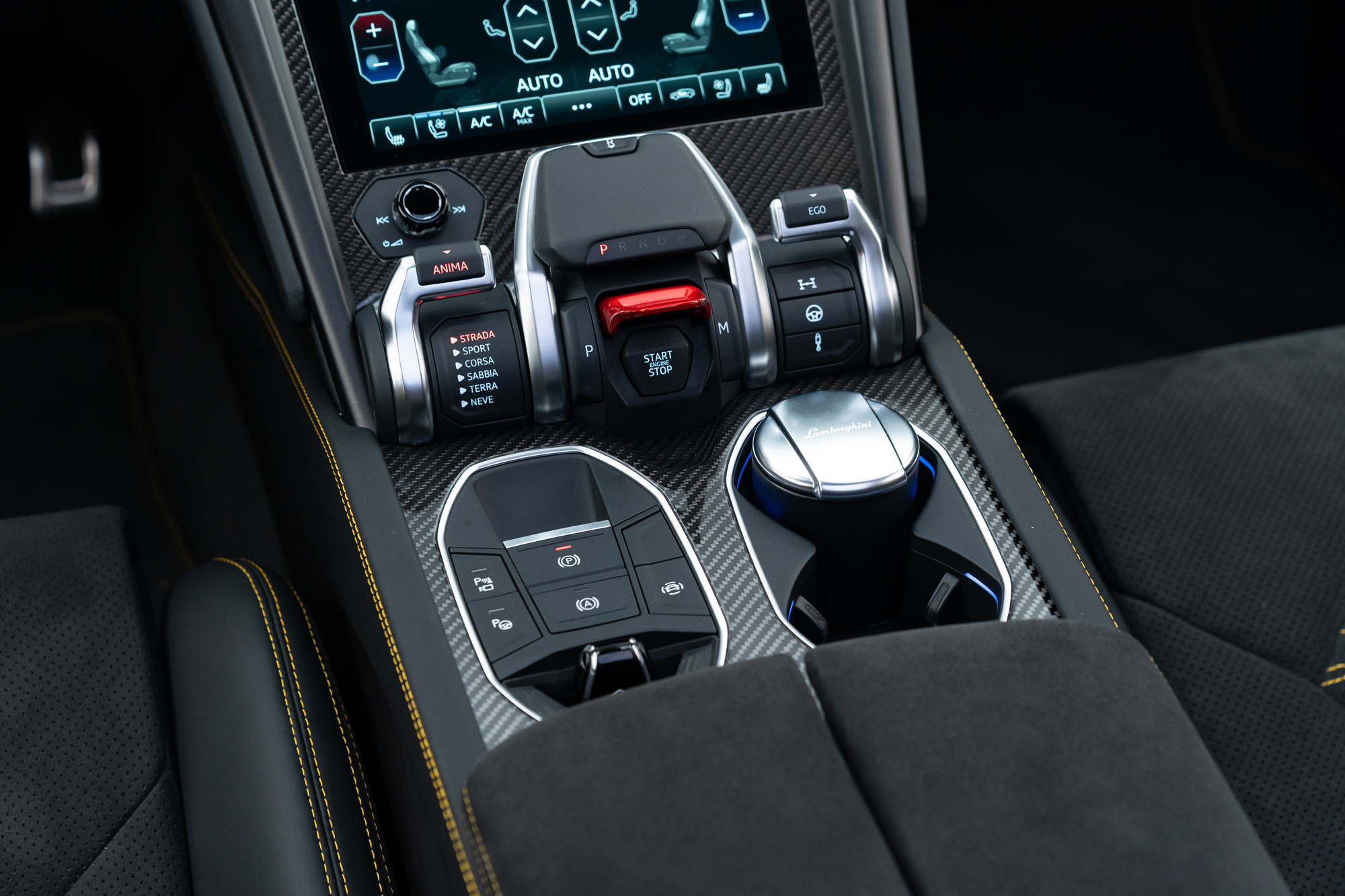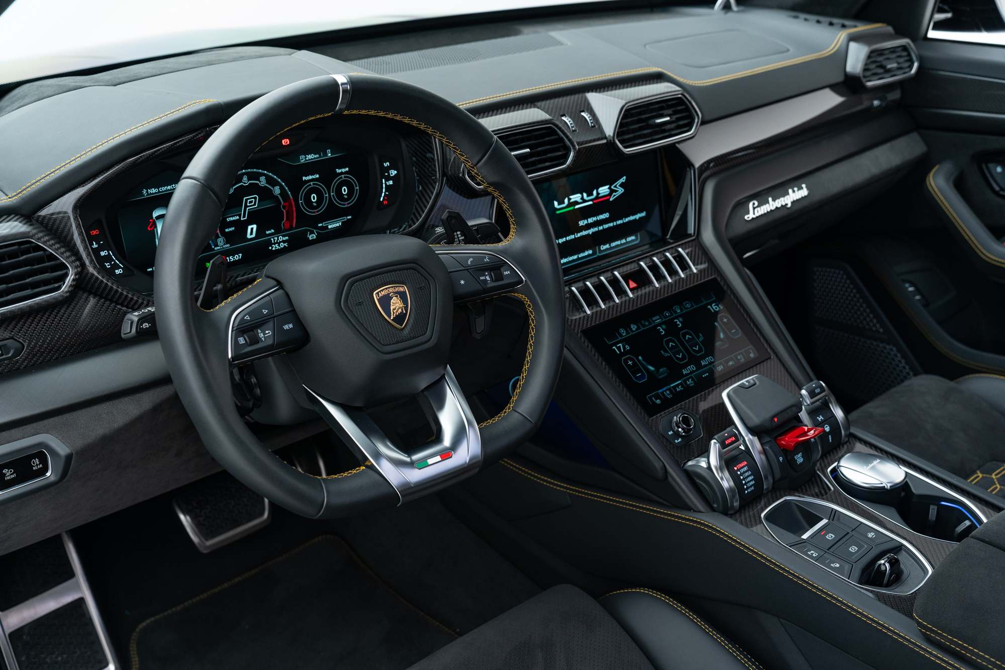 Interior em Alcântara e Couro Nero Ade com costuras em Giallo Taurus