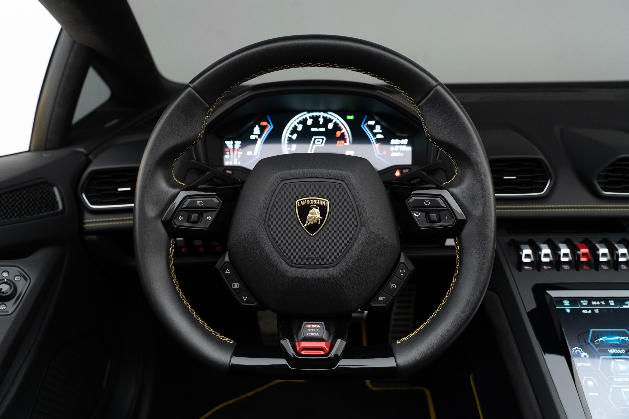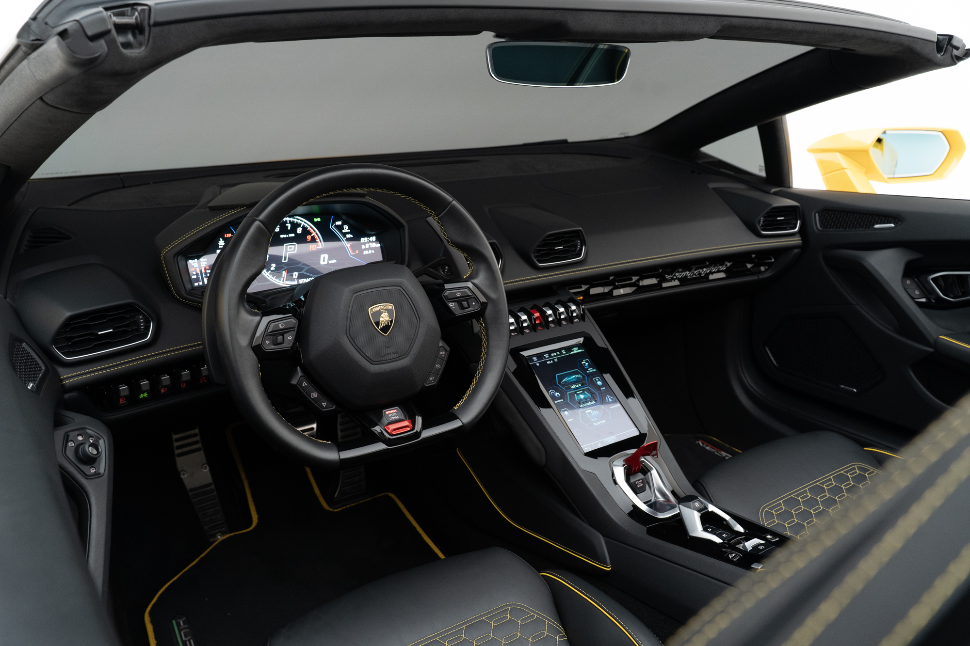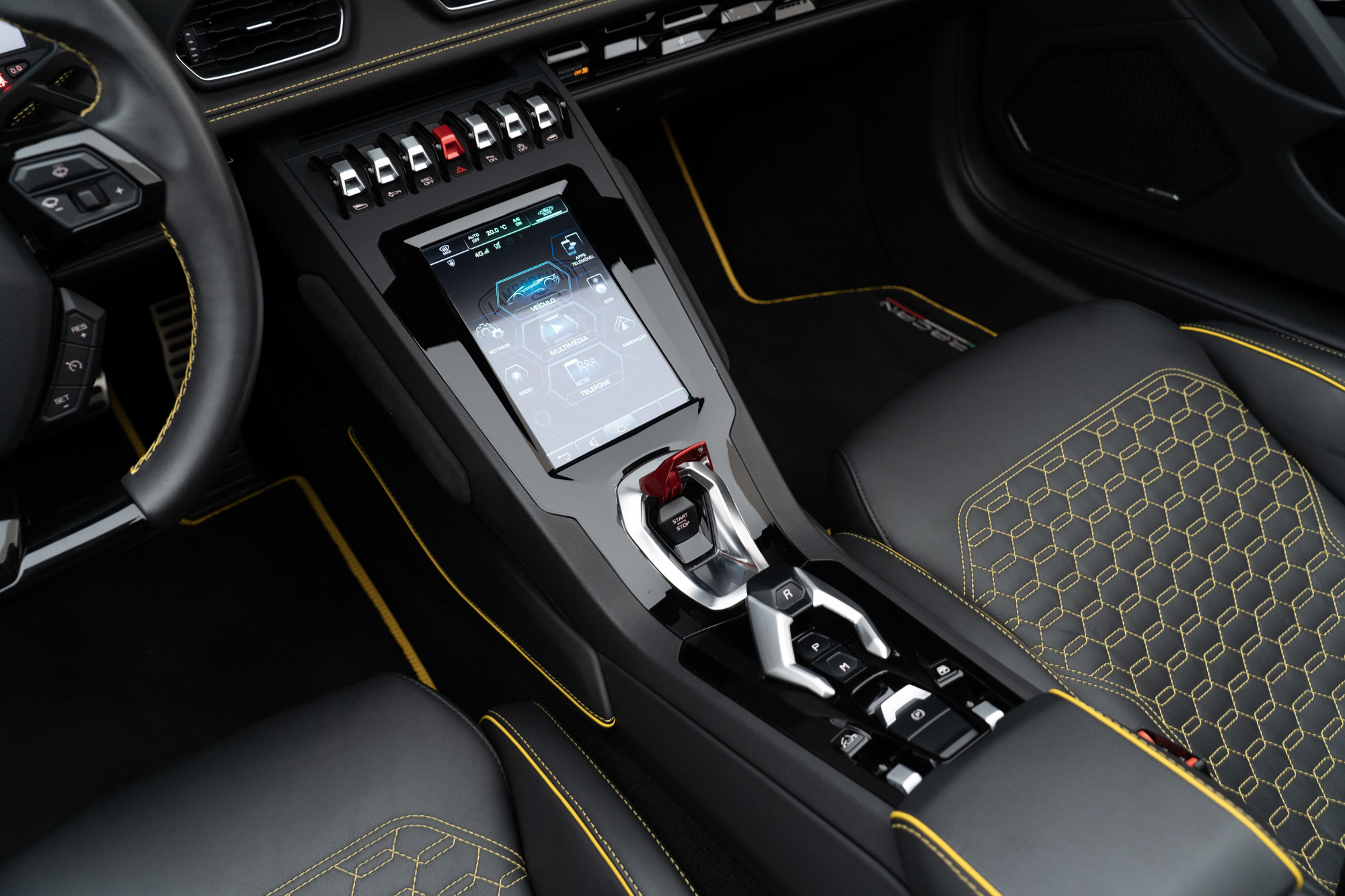 Interior em Alcântara Nero Ade com costuras em Giallo