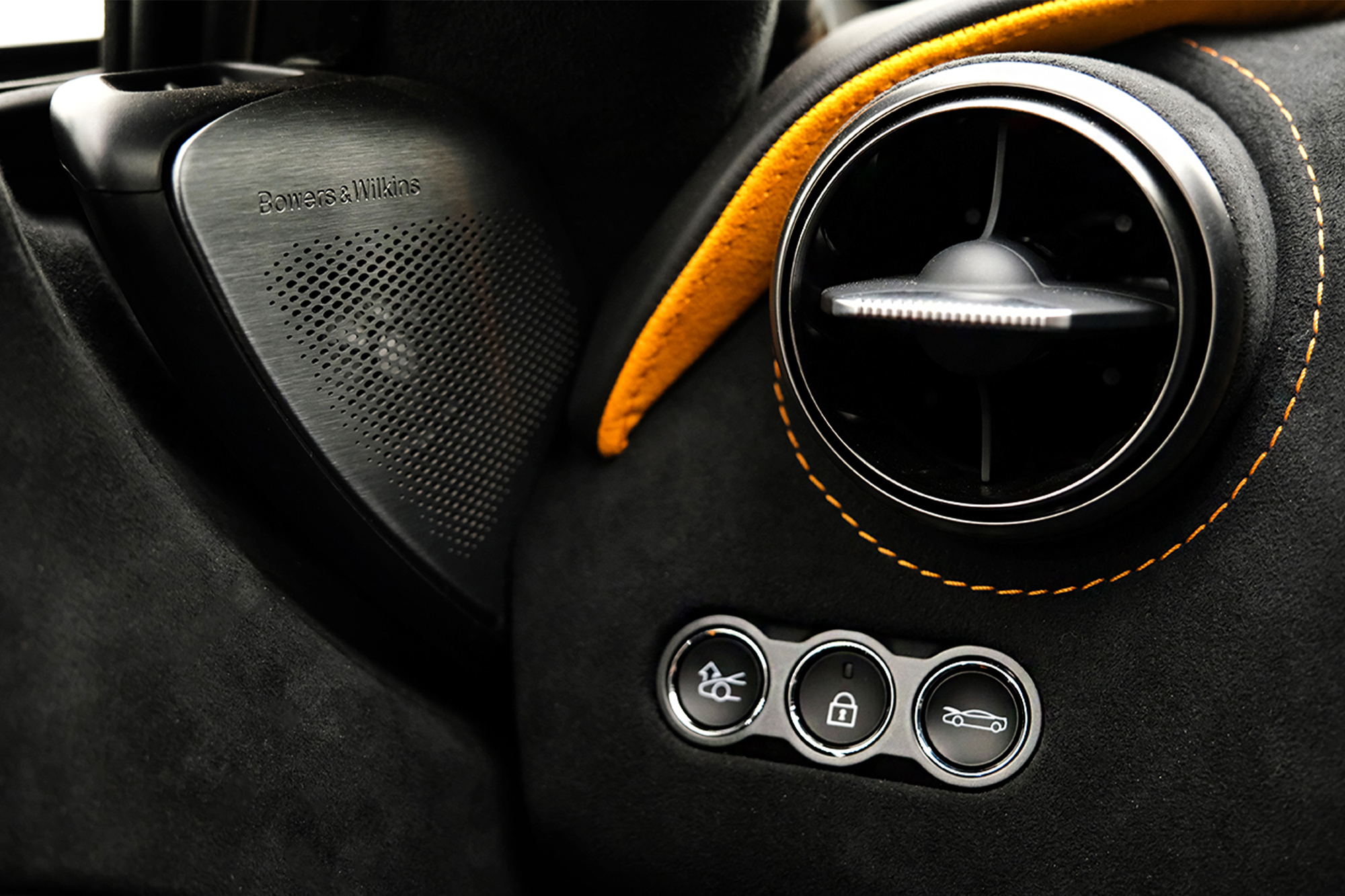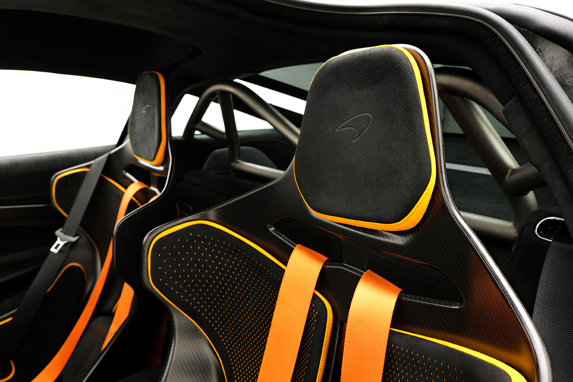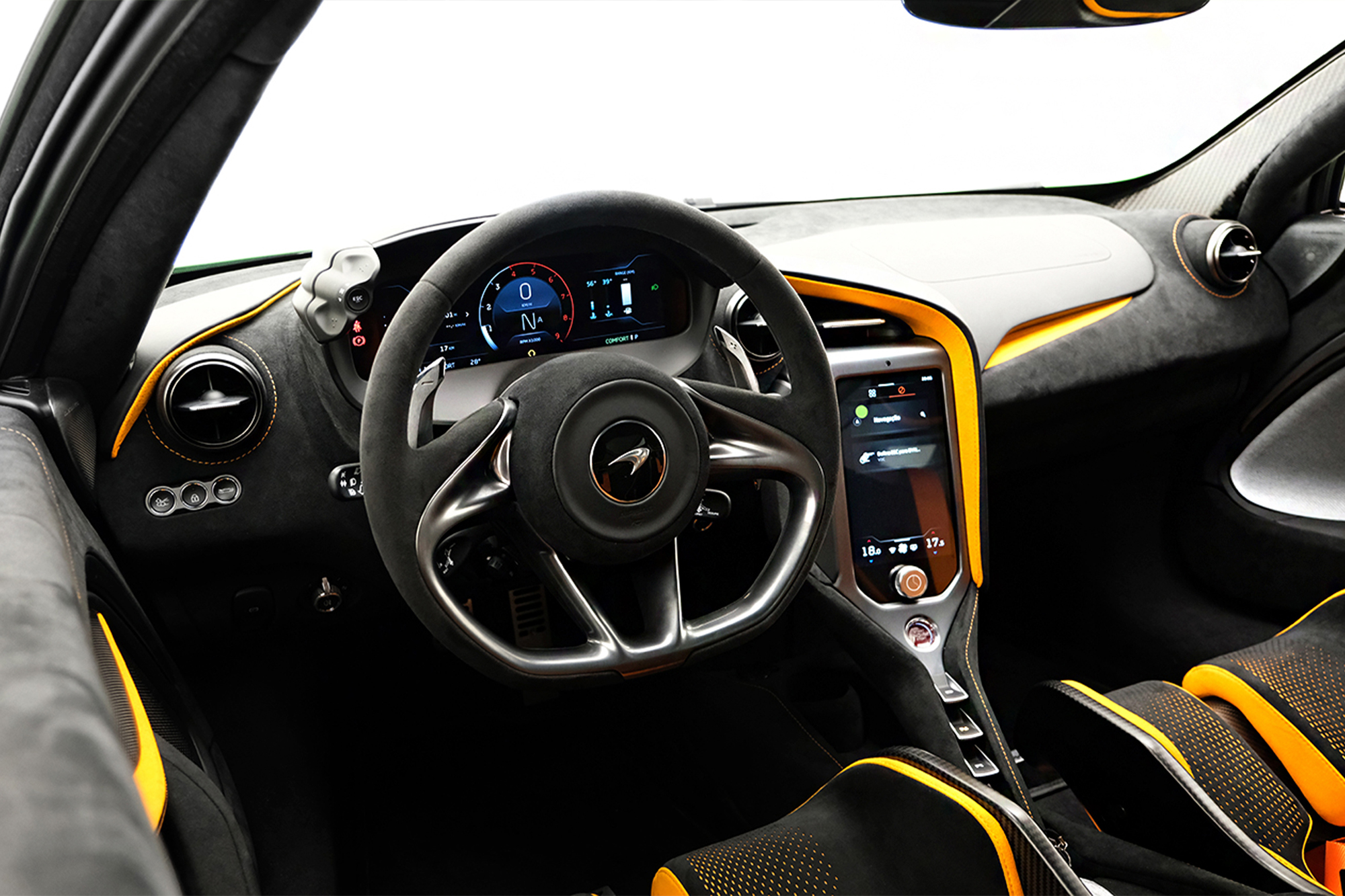 Interior em Alcântara e Couro Softgrain Jet Black e Mclaren Orange