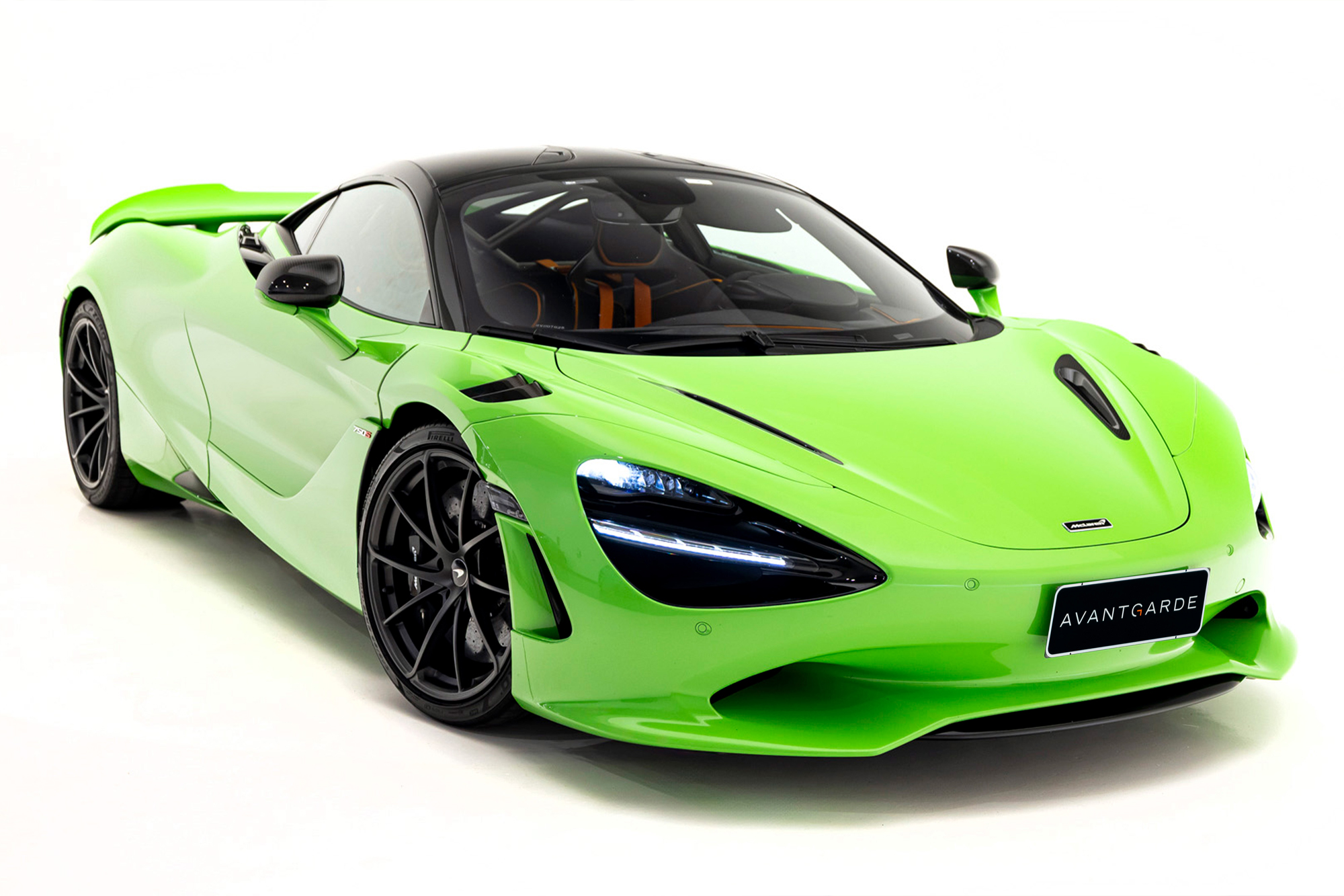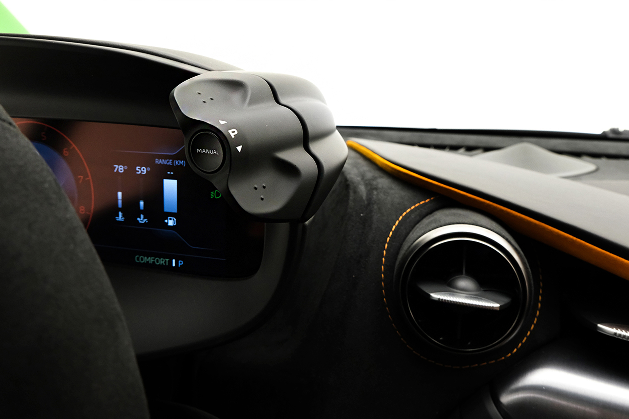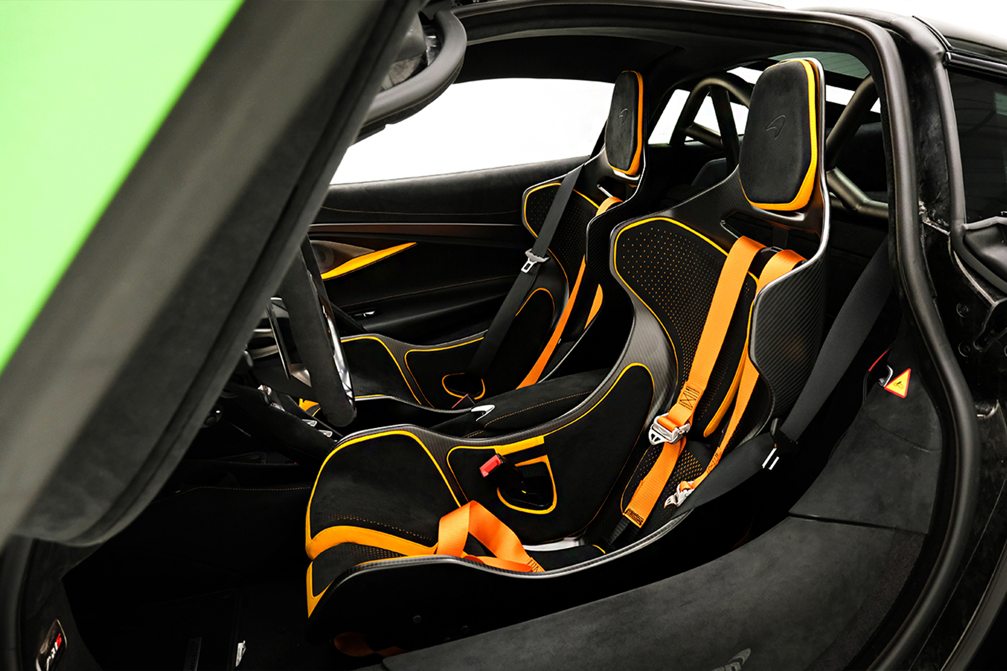 Interior em Alcântara e Couro Softgrain Jet Black e Mclaren Orange