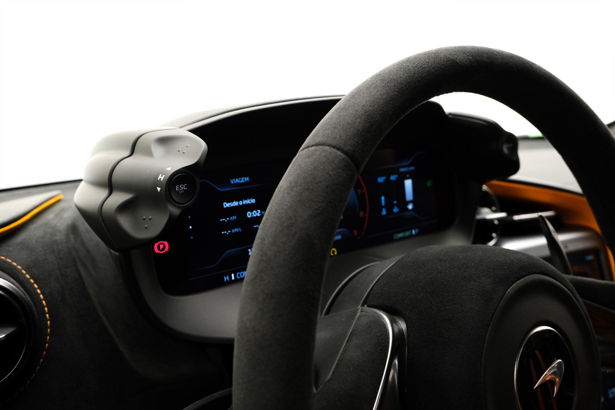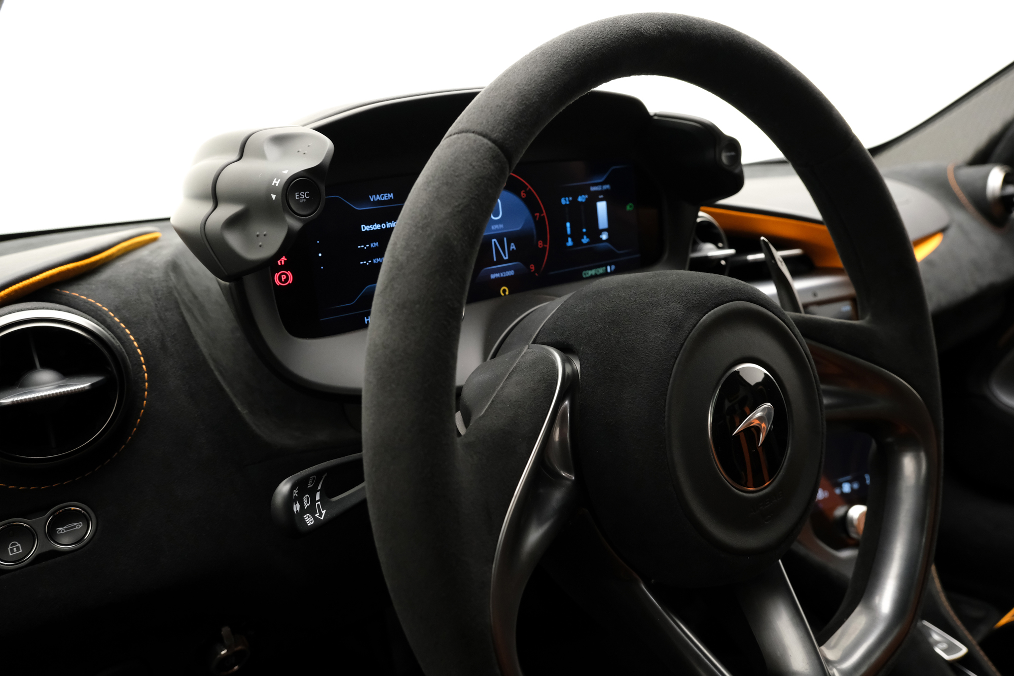 ALCÂNTARA E COURO JET BLACK E MCLAREN ORANGE