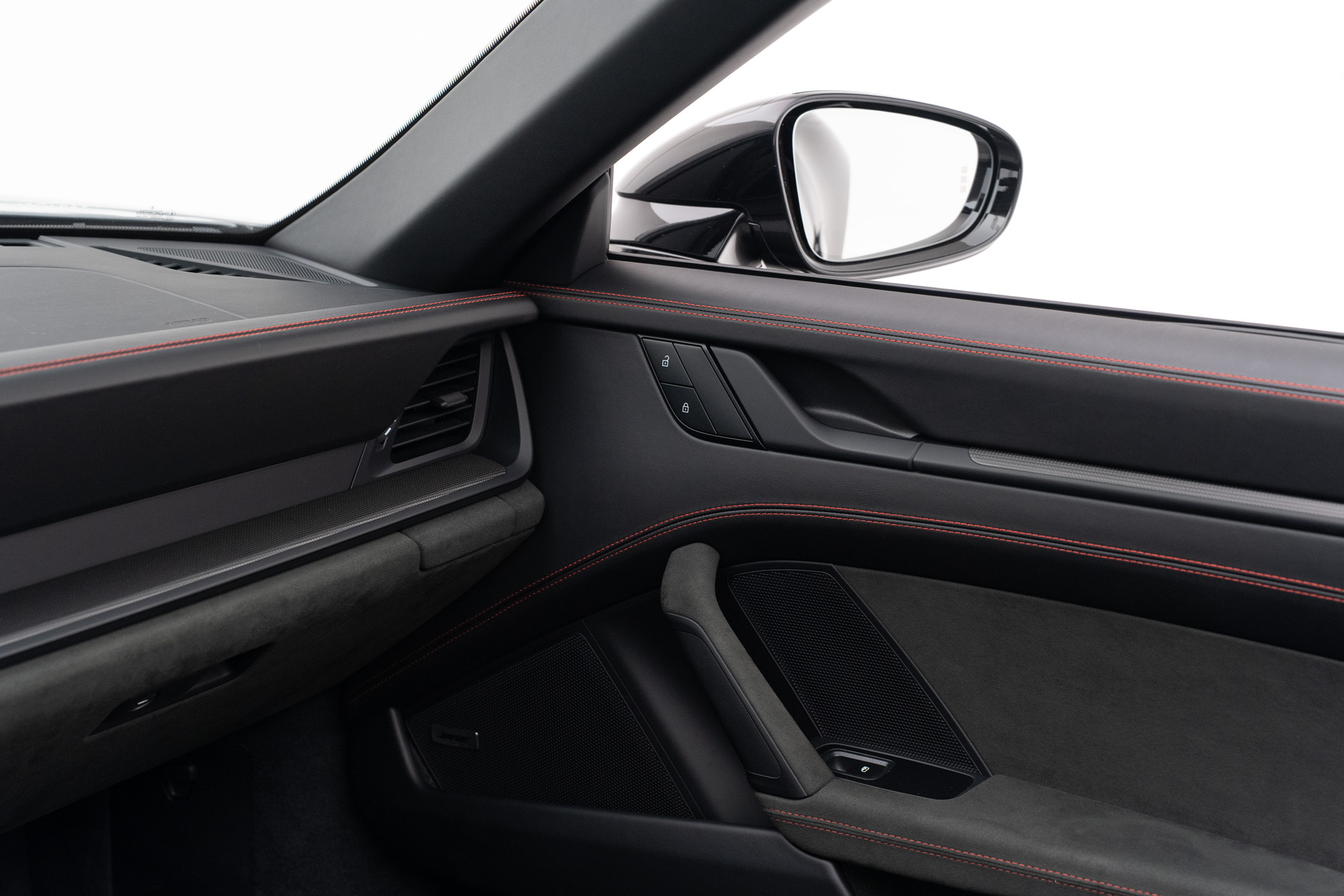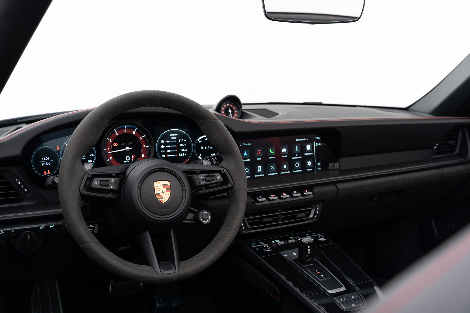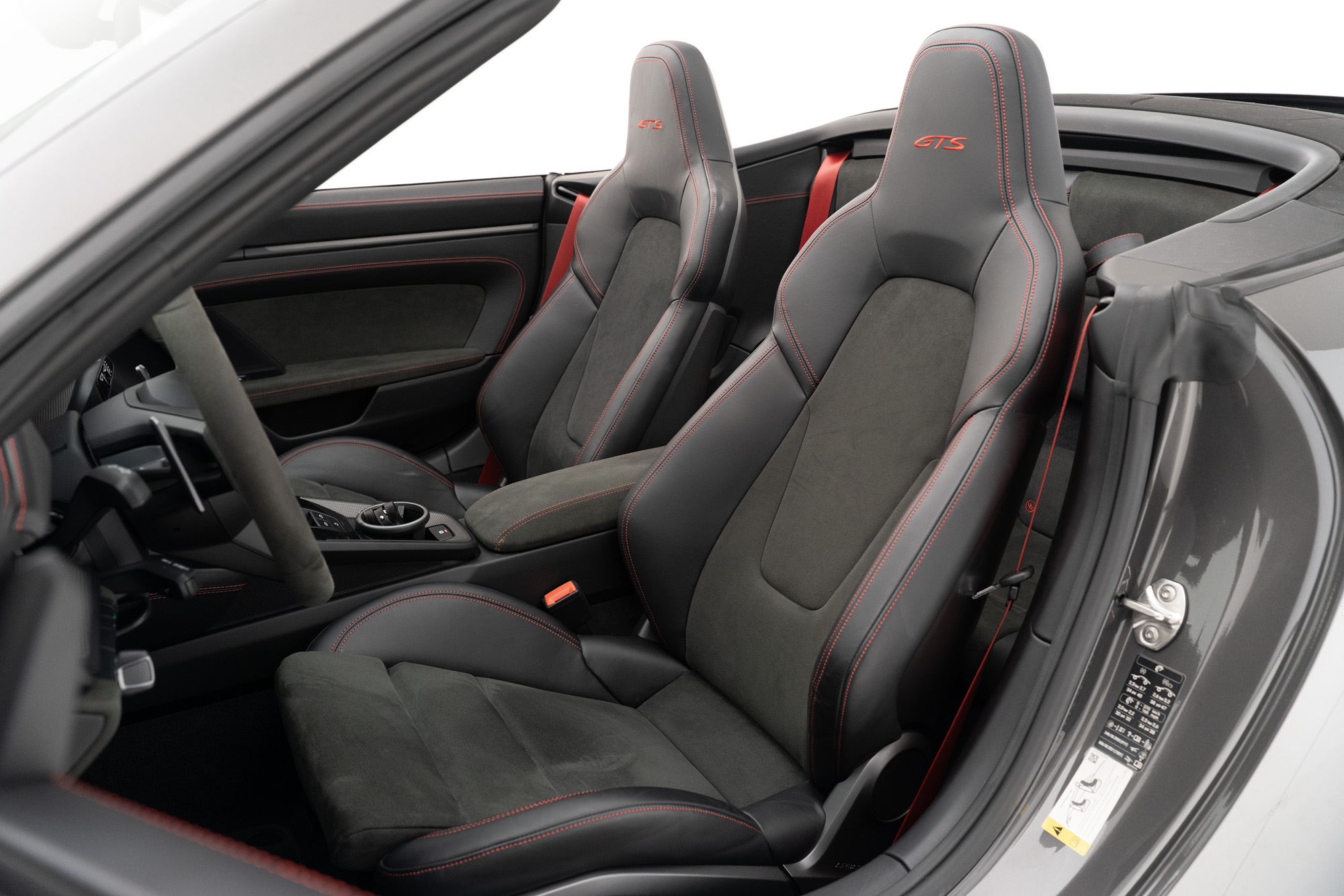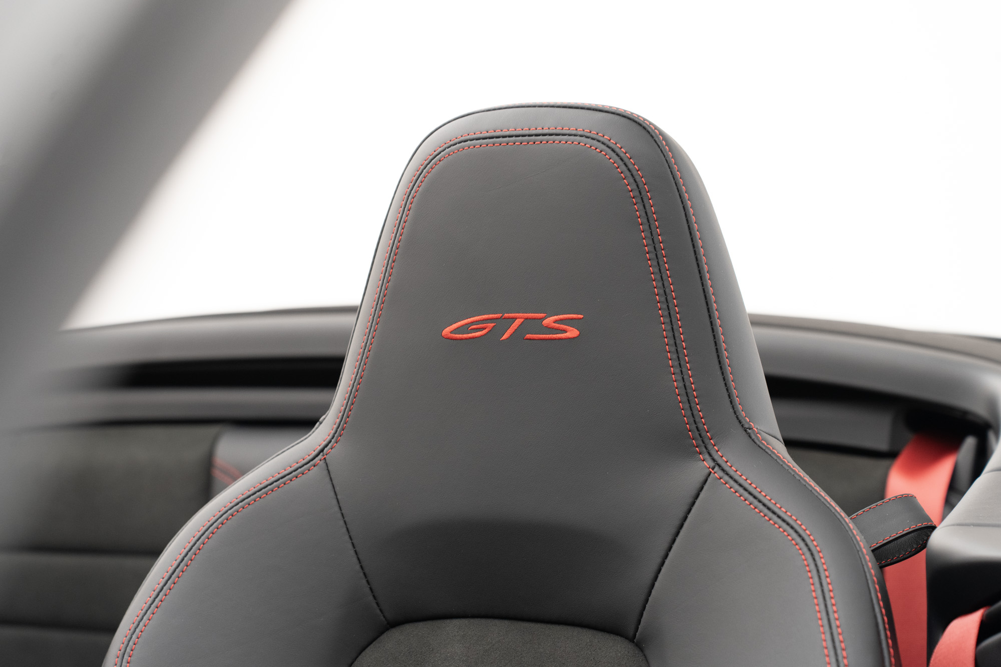 Interior GTS em Race-Tex e Couro Preto com costuras em Vermelho Carmim