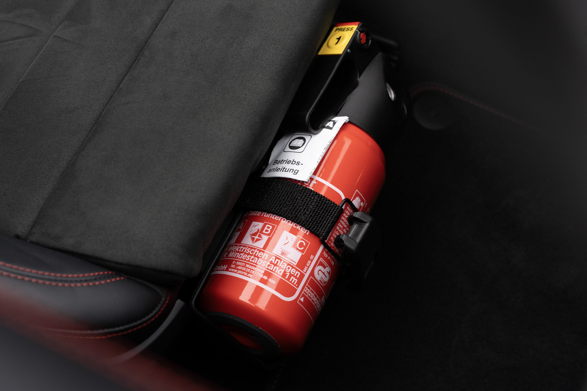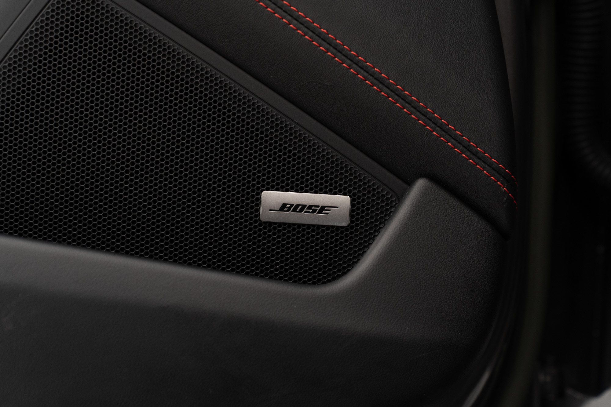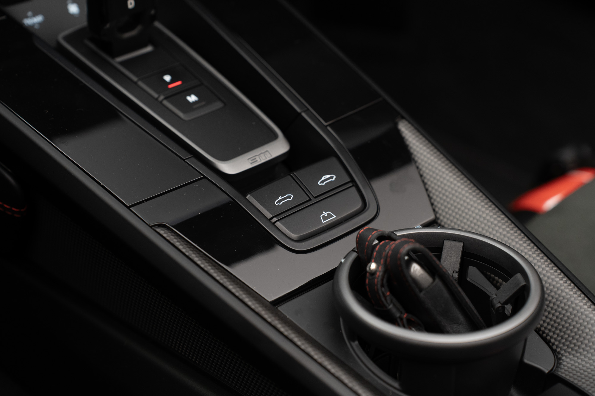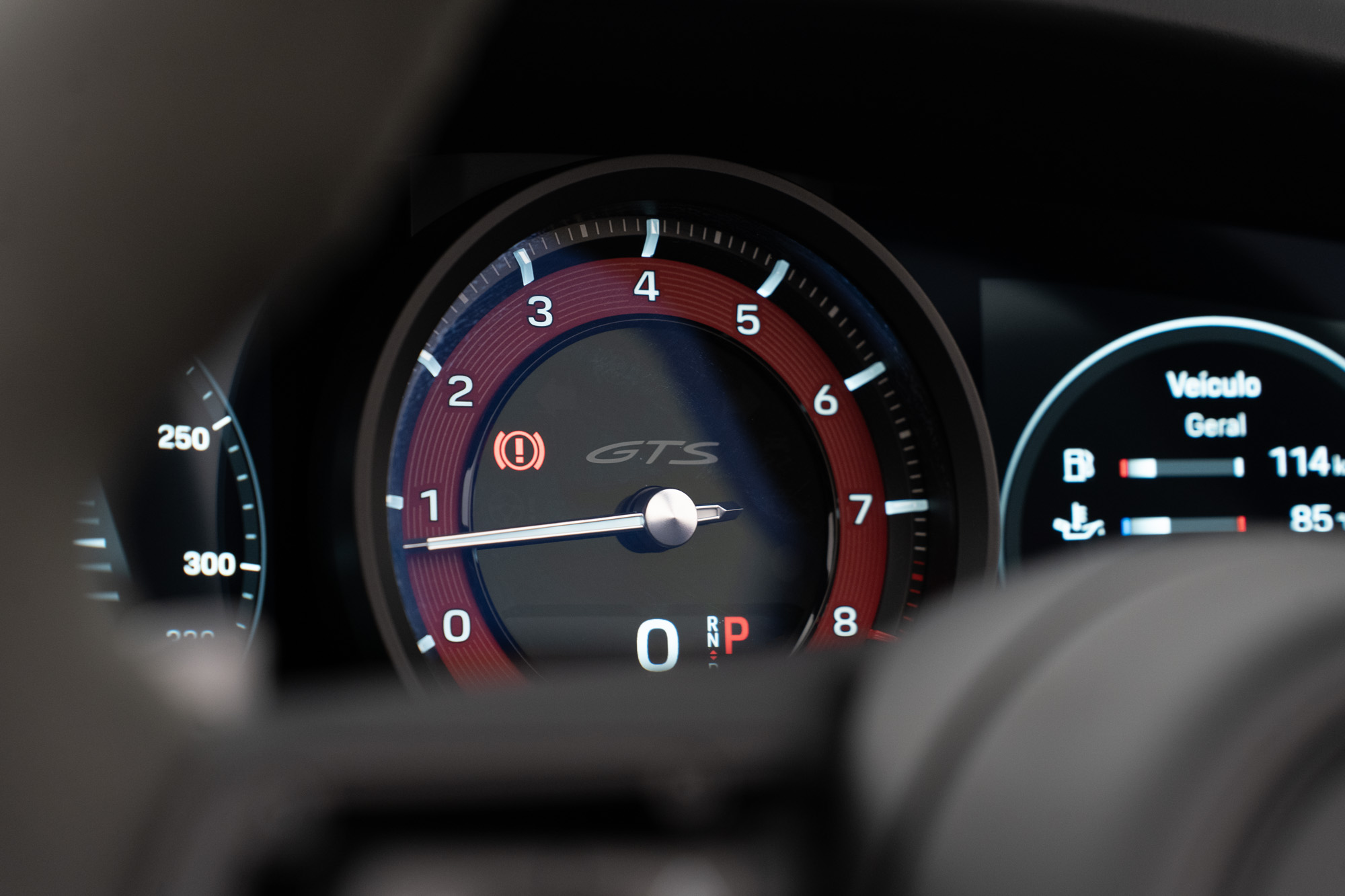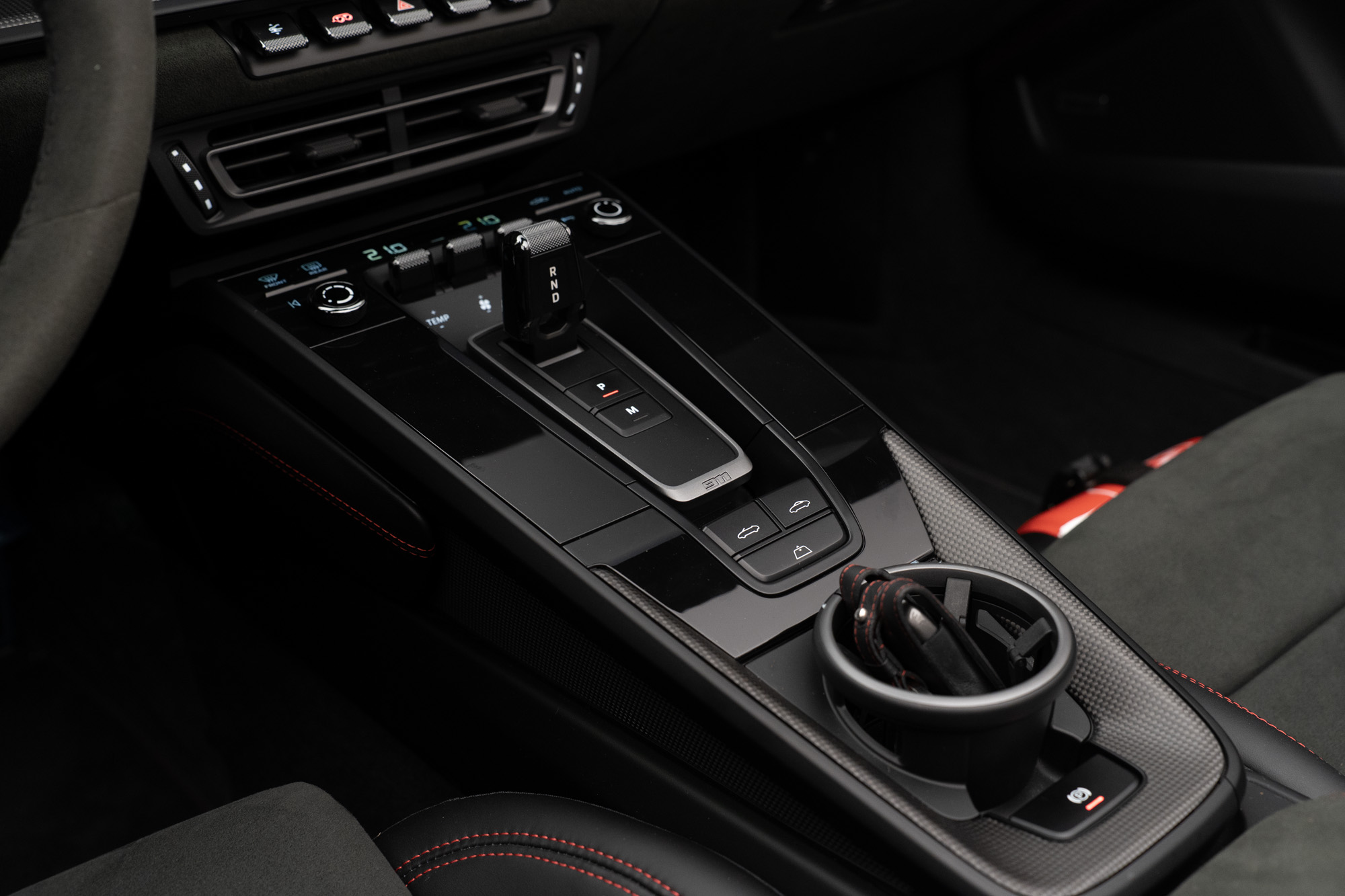Interior GTS em Race-Tex e Couro Preto com costuras em Vermelho Carmim