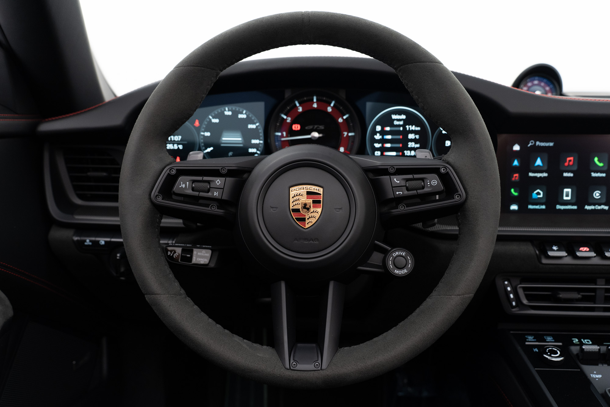 Volante em Race-Tex multifuncional com paddle shift e seletor de modos