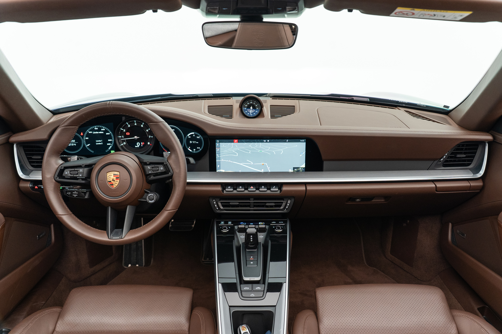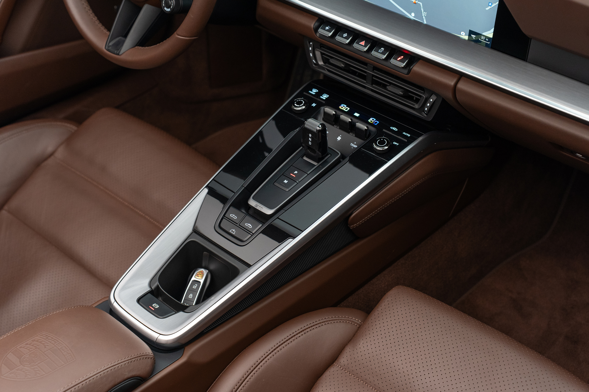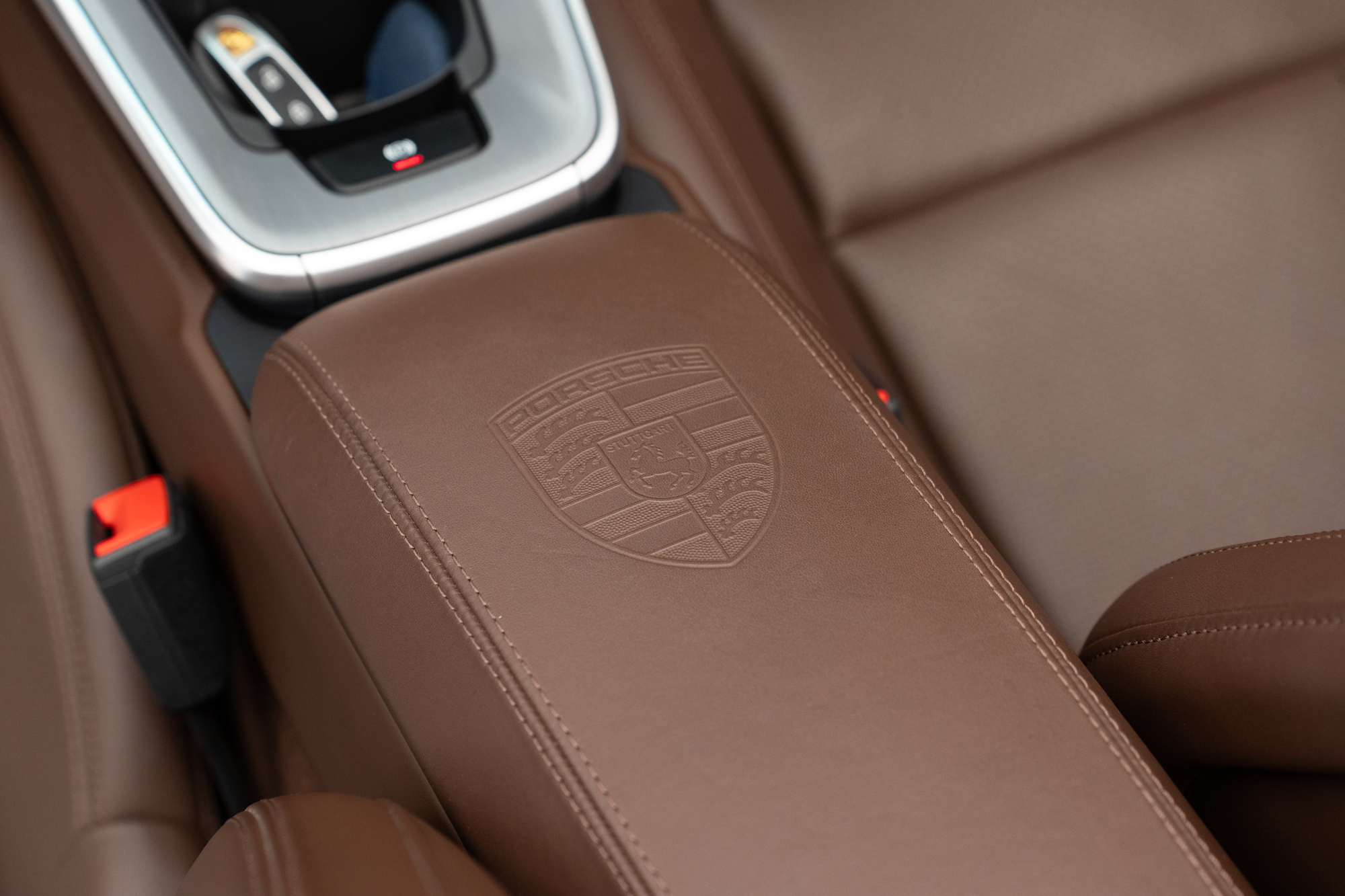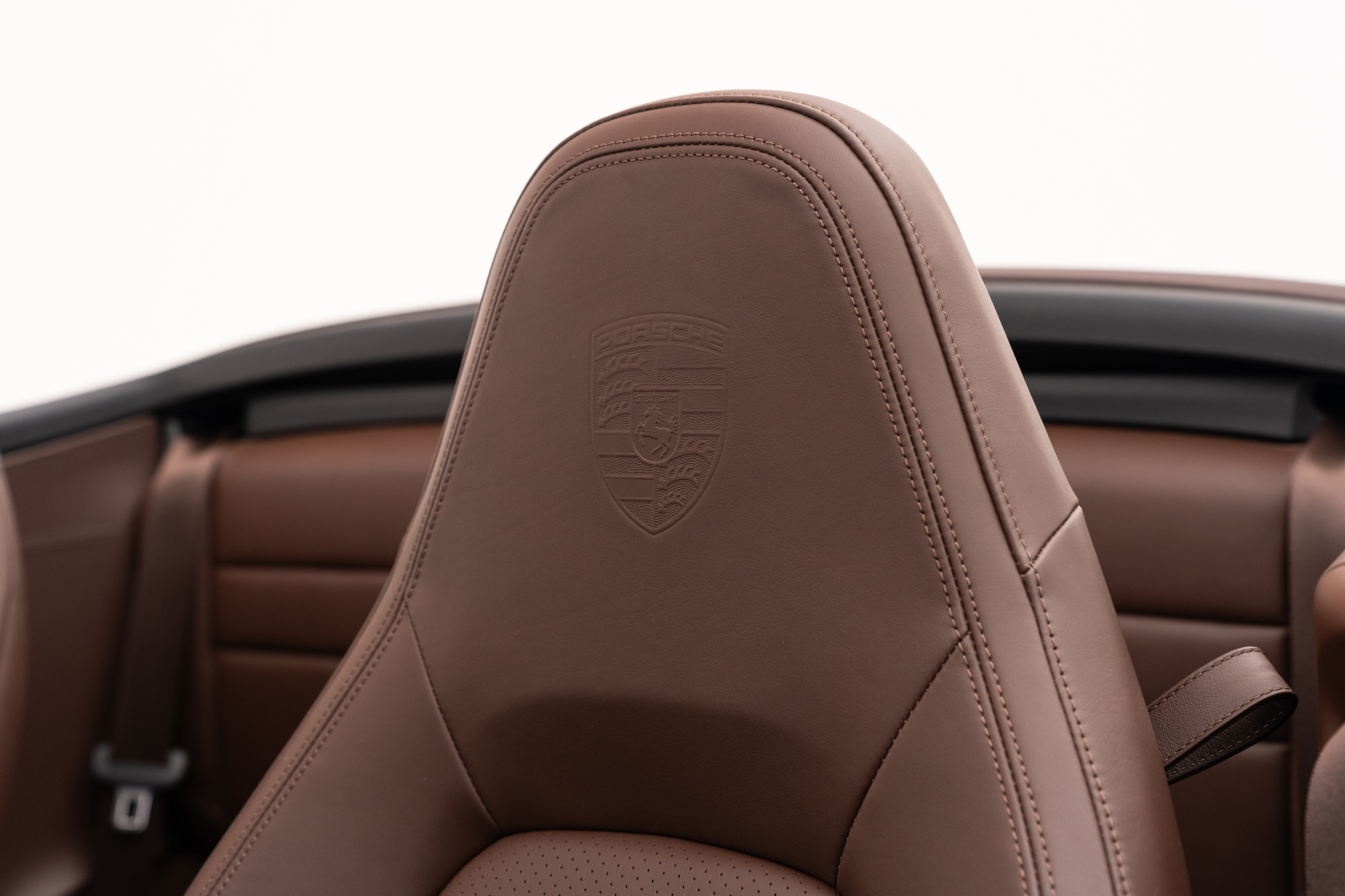 Escudos Porsche grafados nos encostos de cabeça dos bancos