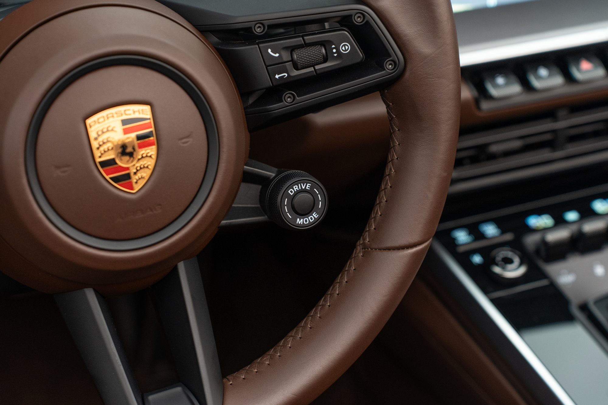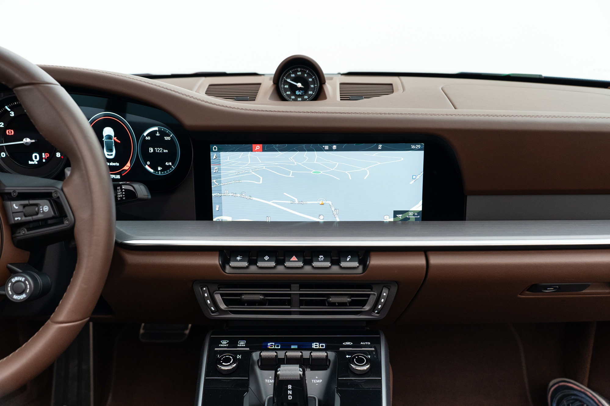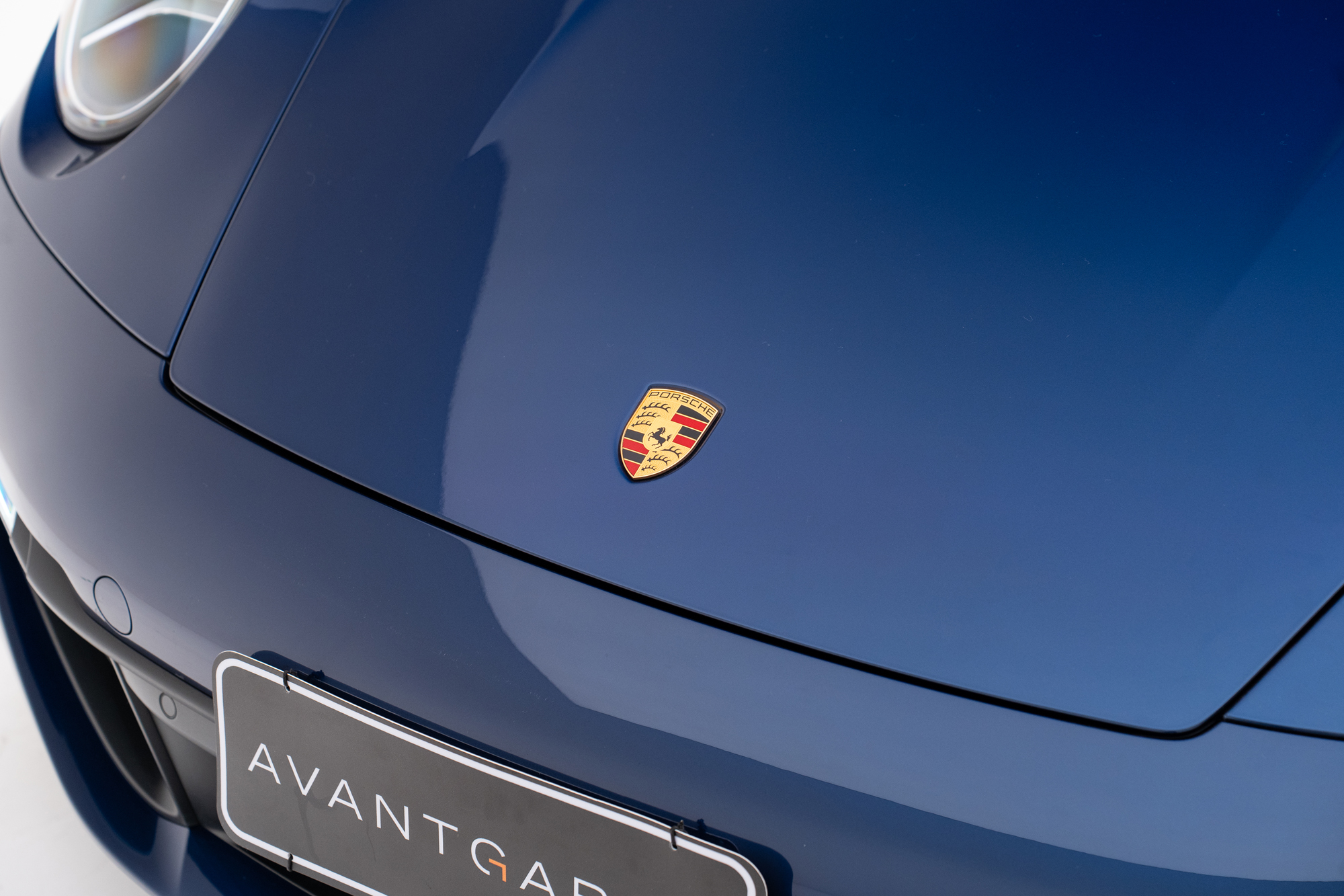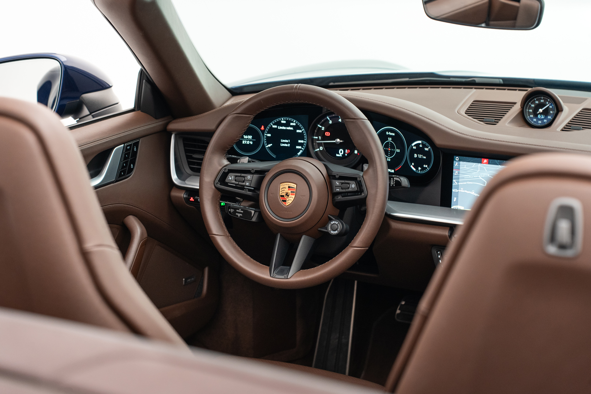 Escudos Porsche grafados nos encostos de cabeça dos bancos
