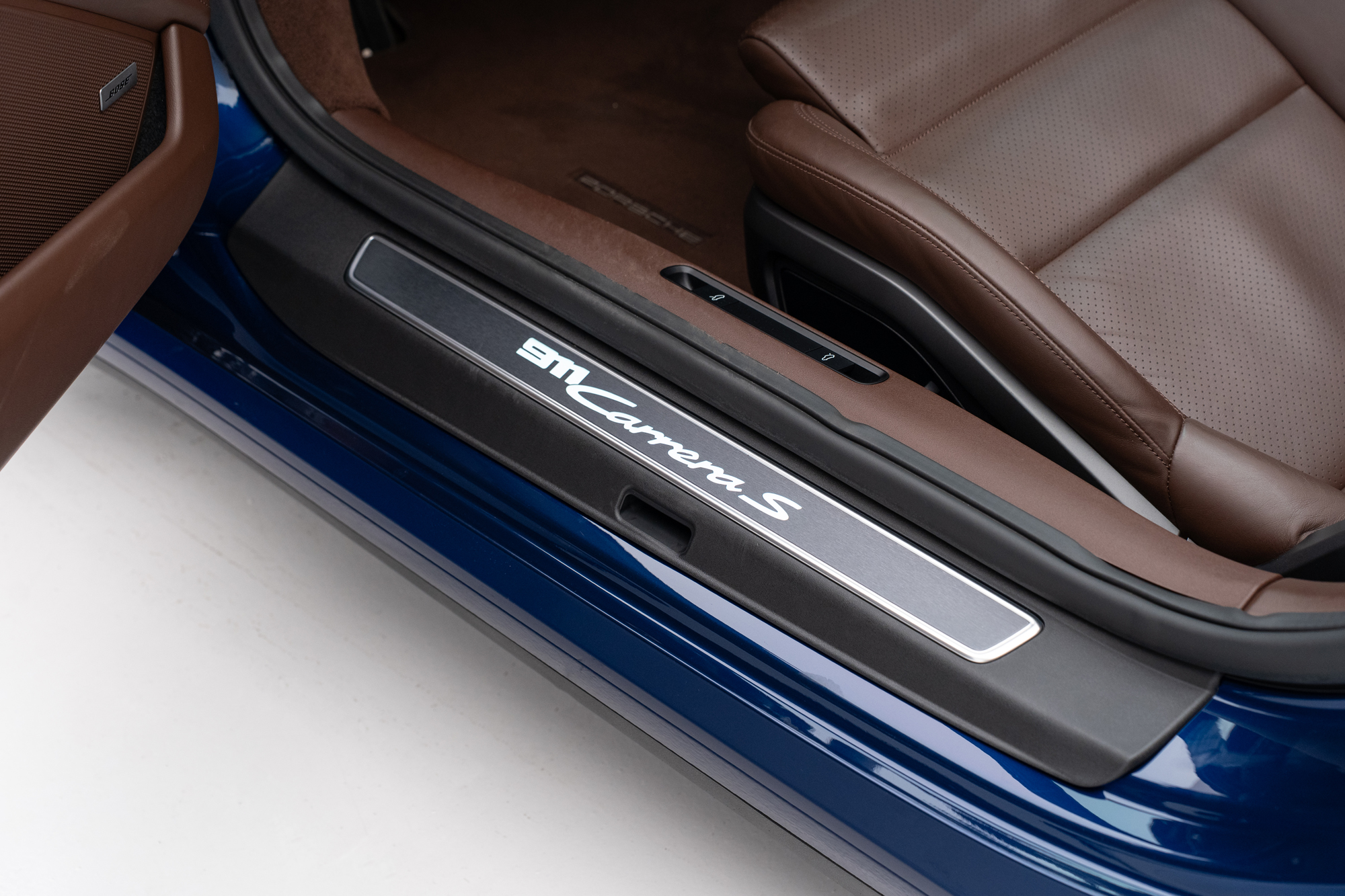 Soleira em Alumínio escovado com inscrição "911 CARRERA S" iluminada