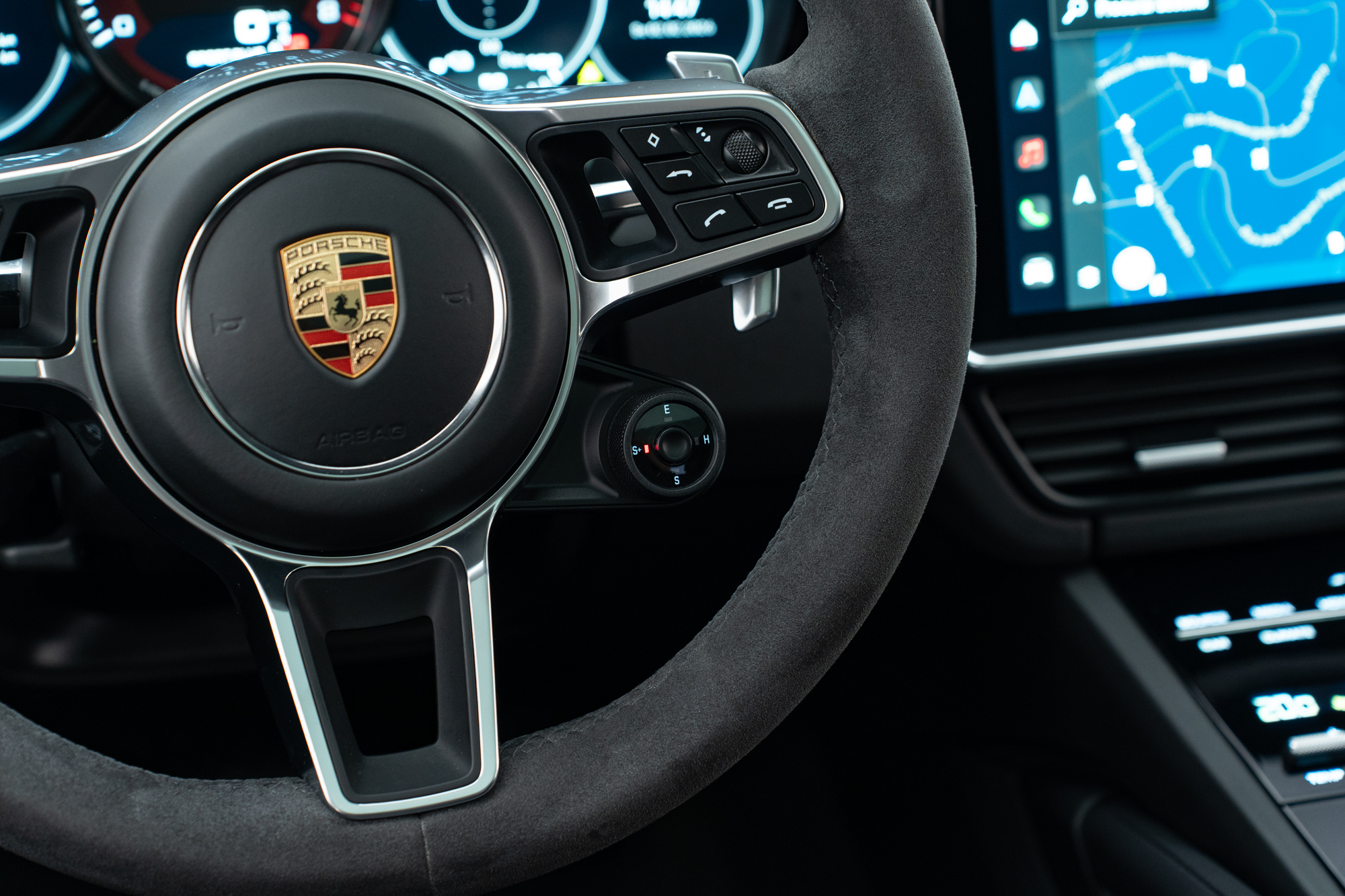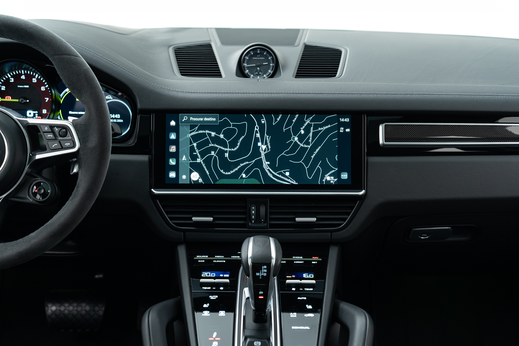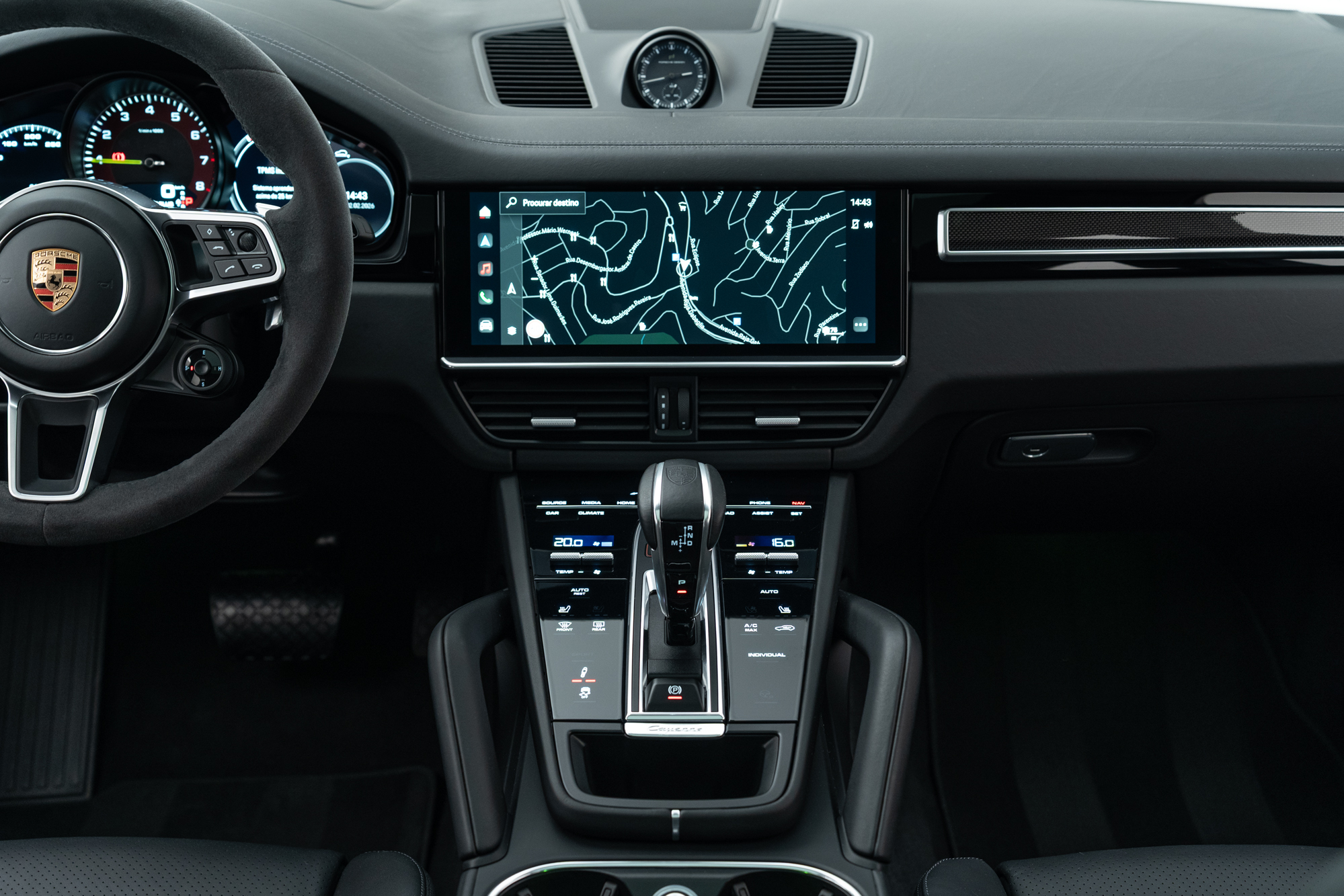 Volante multifuncional em Race-Tex com paddle shift, seletor de modos e aquecimento