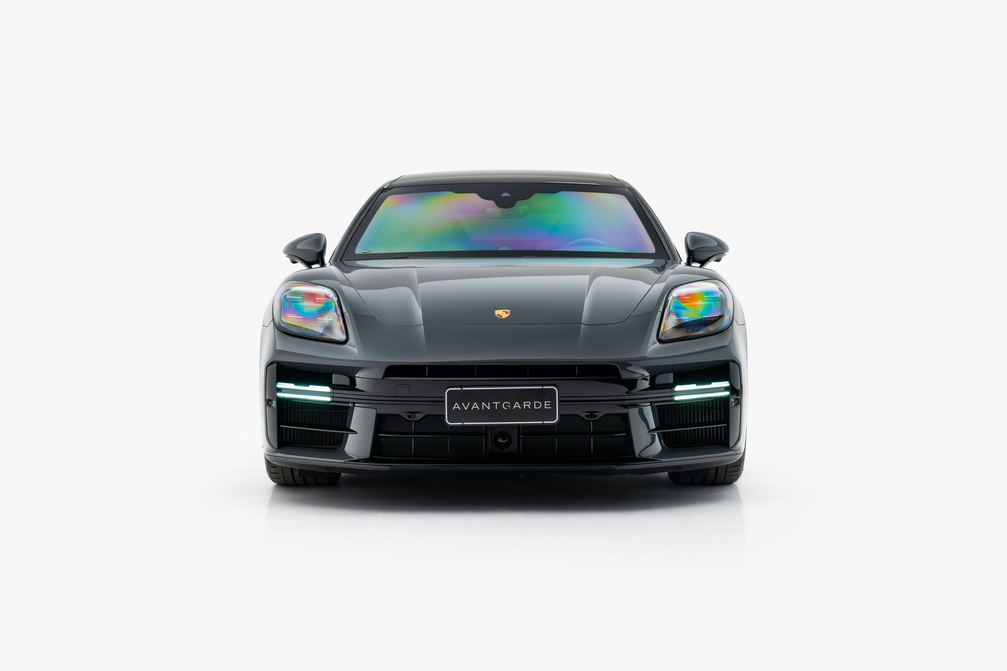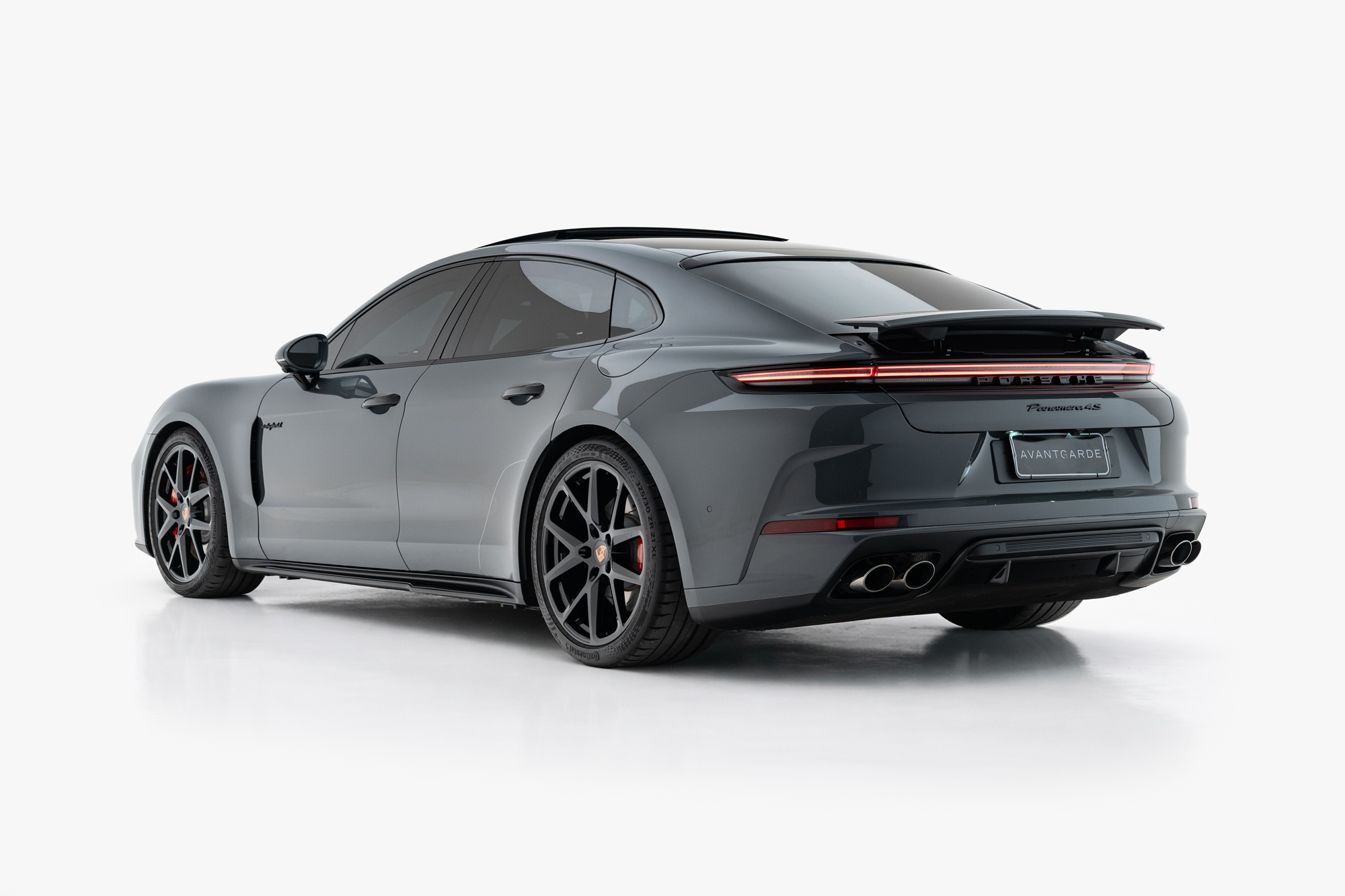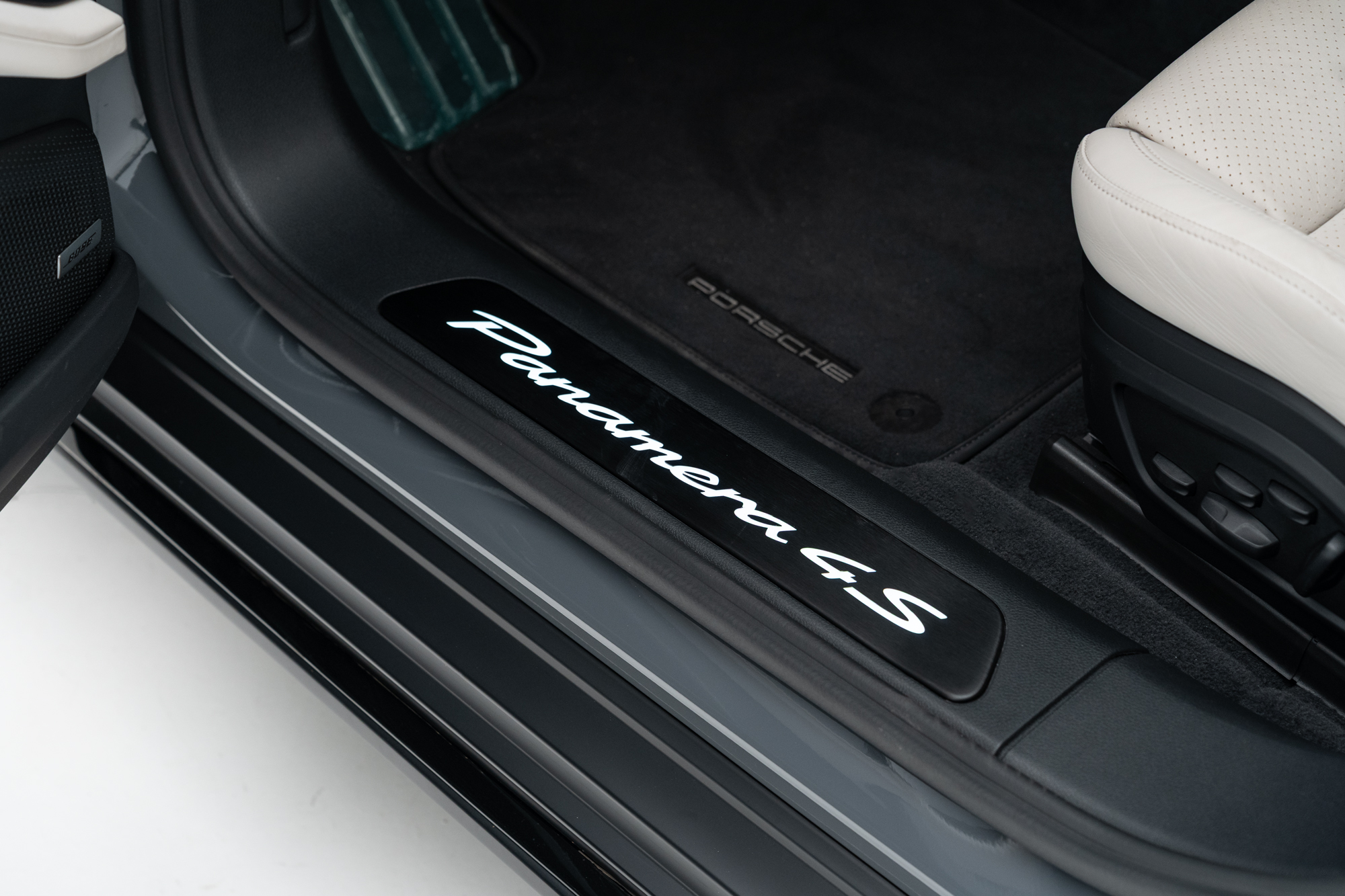 Soleira em Alumínio escurecido com inscrição “PANAMERA 4S” iluminada