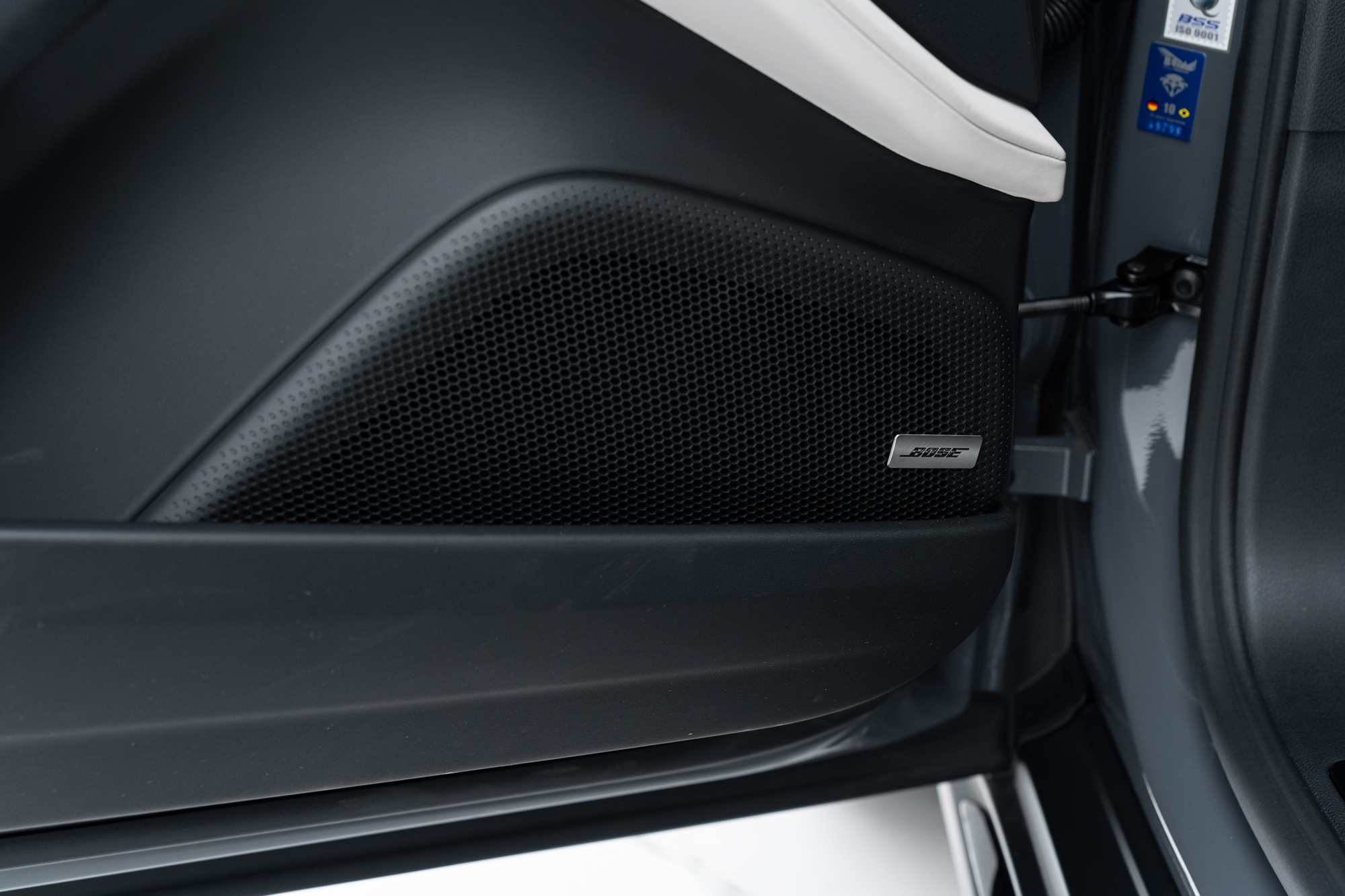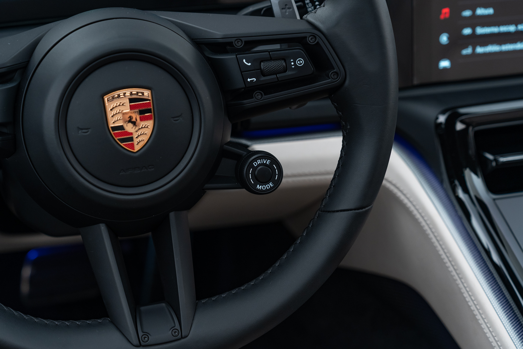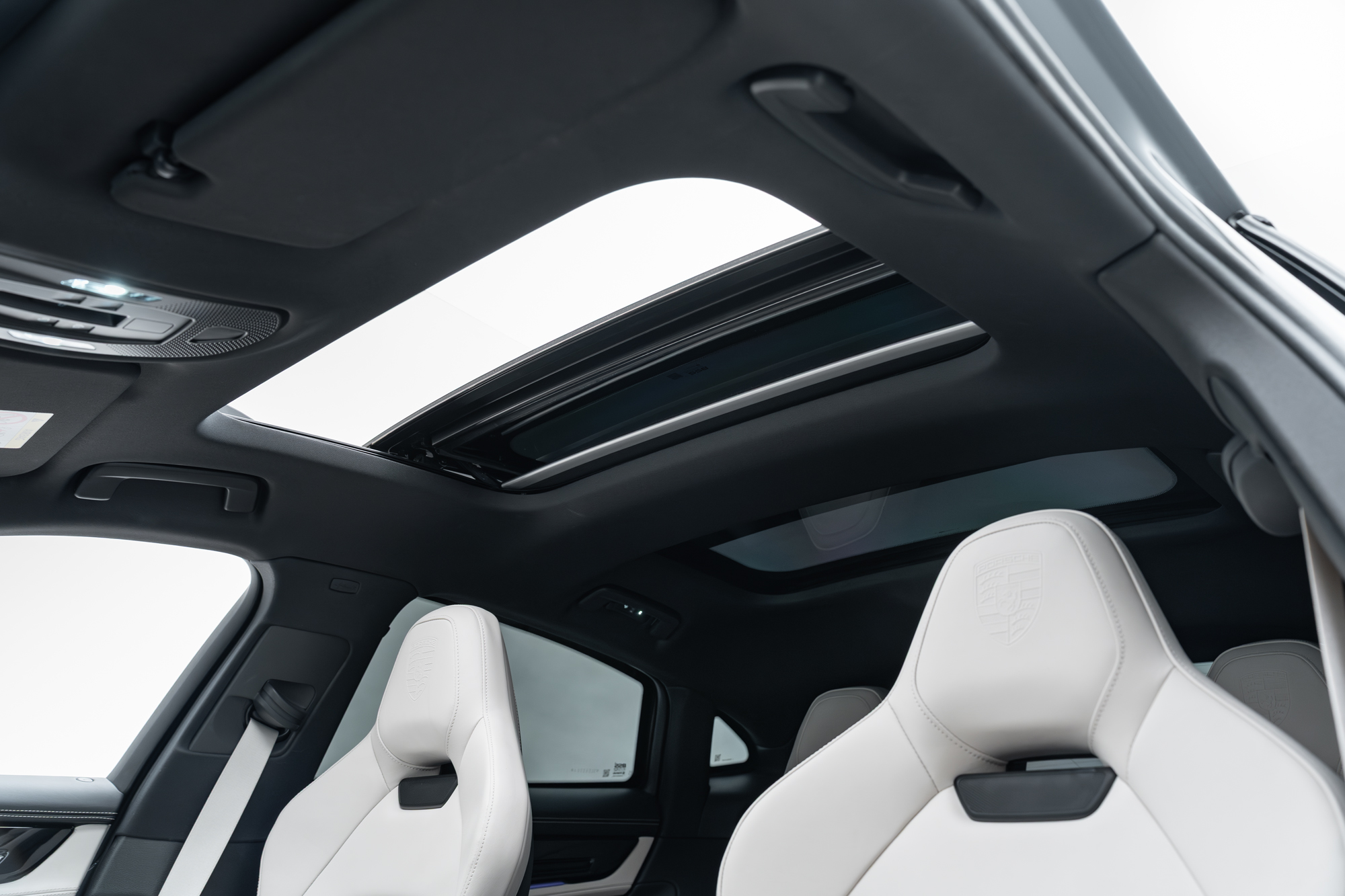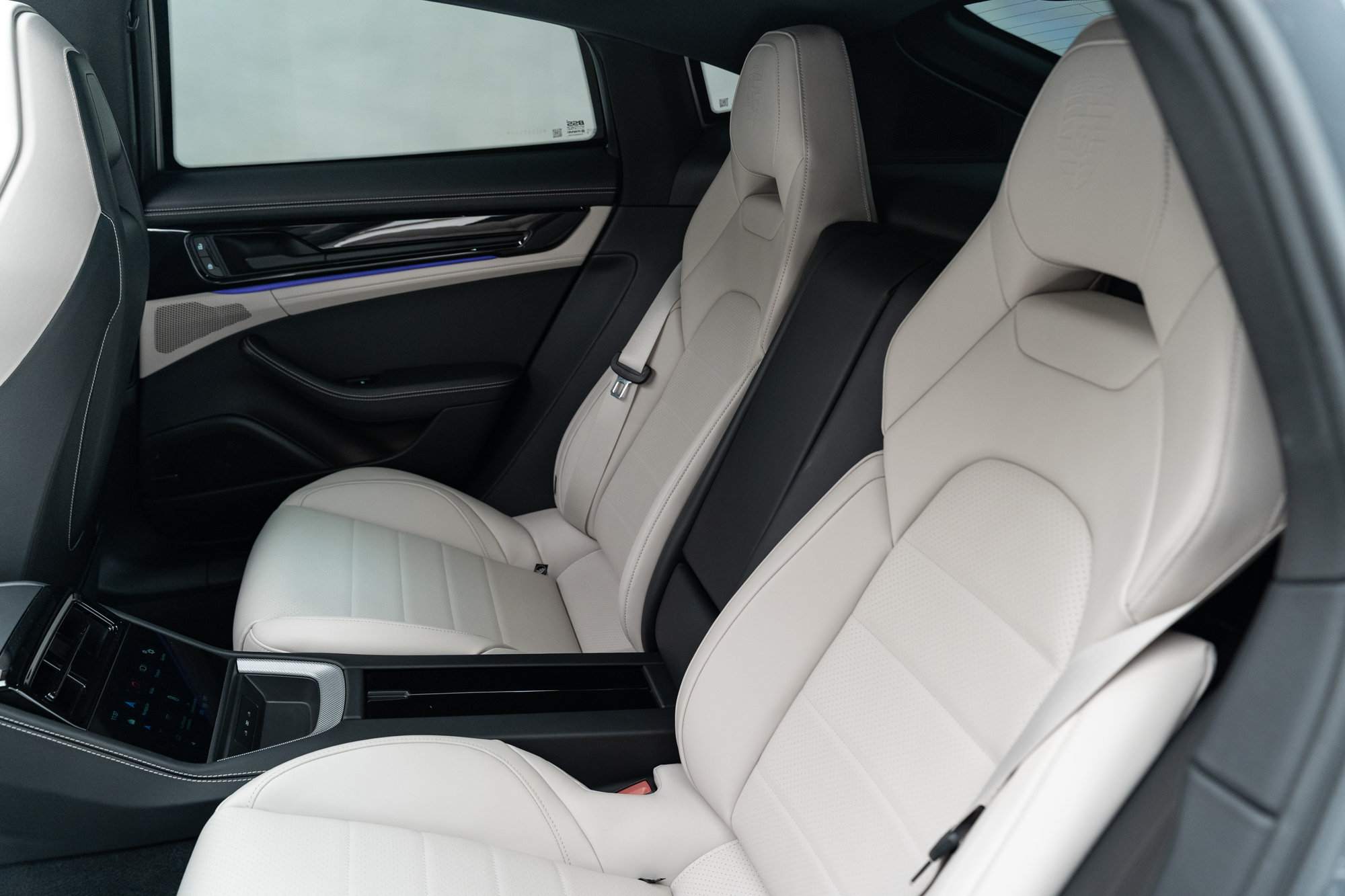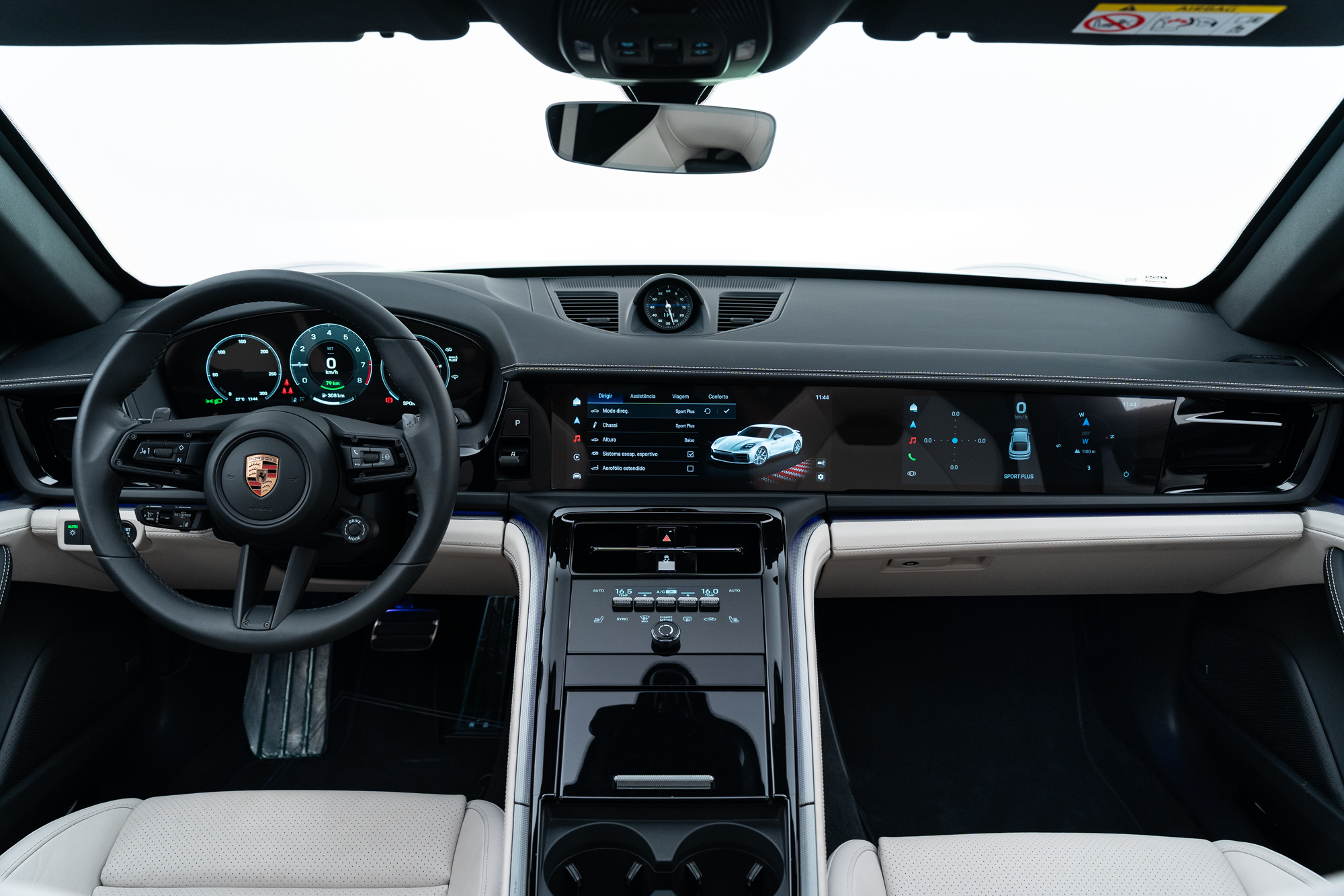 Escudos Porsche grafado nos encostos de cabeça dos bancos