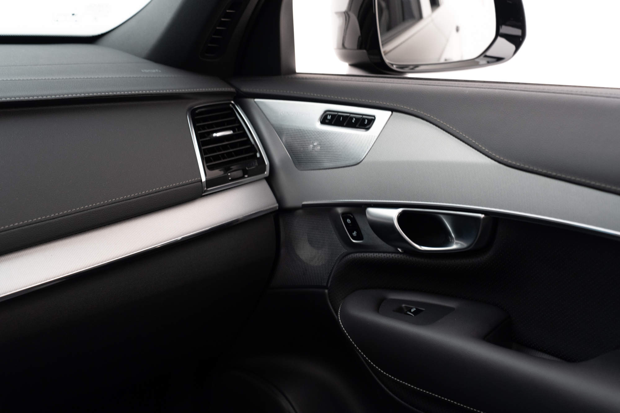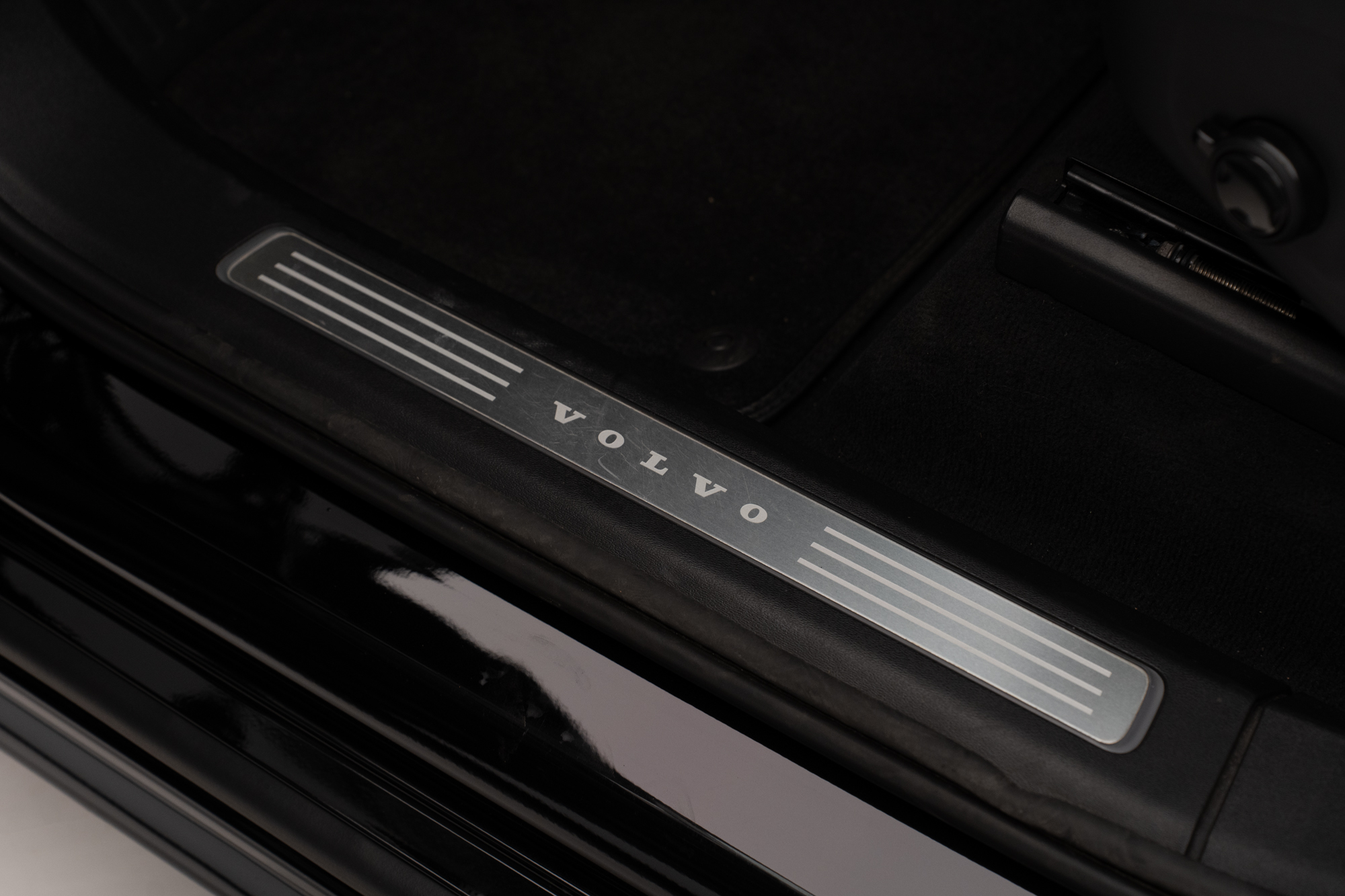 Soleira em alumínio com inscrição "VOLVO" iluminada